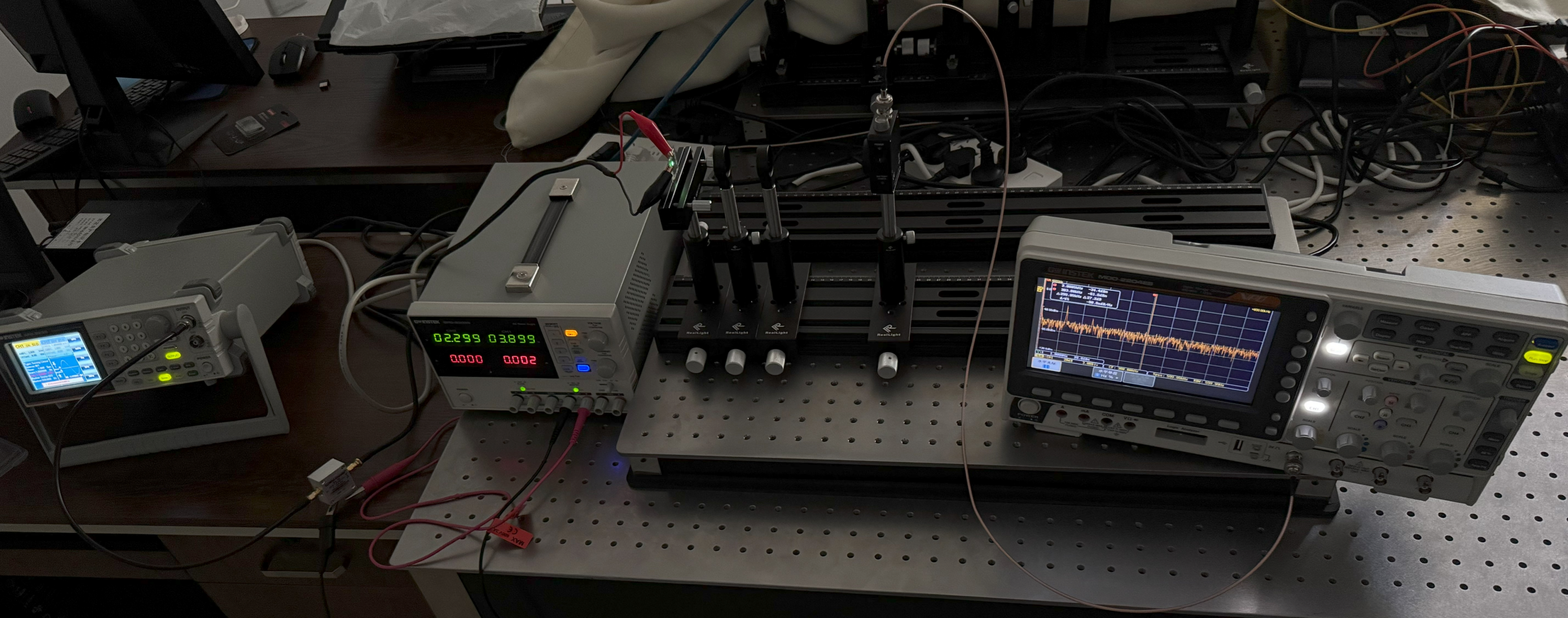 Figure 8. The OLED device was operated under linear bias conditions, with a swept-frequency signal (1 Hz to 2 MHz) generated by an arbitrary function generator (GW Instek AFG-2230, GW Instek, Suzhou, China) at a peak-to-peak voltage (