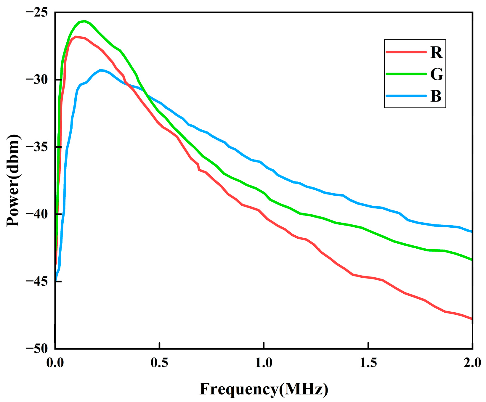 Given that OLEDs typically exhibit limited bandwidth (on the order of kHz), a photodetector with a substantially higher bandwidth—such as the DET36A2 (DP), with approximately 25 MHz—was used as the receiver to measure the frequency response. Under this configuration, the overall link bandwidth can be largely attributed to that of the OLED device [