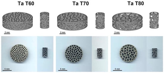 Three porous tantalum scaffolds with different porosities. (Adapted from [49]).