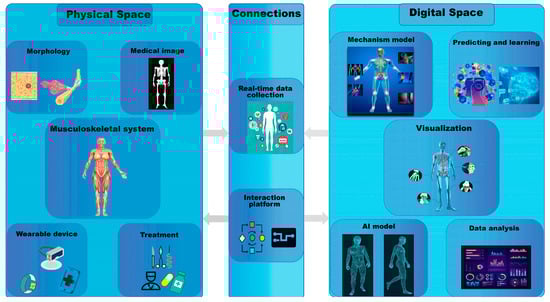 - Sun, T.; Wang, J.; Suo, M.; Liu, X.; Huang, H.; Zhang, J.; Zhang, W.; Li, Z. The Digital Twin: A Potential Solution for the Personalized Diagnosis and Treatment of Musculoskeletal System Diseases. Bioengineering 2023, 10, 627. [Google Scholar] [CrossRef] [PubMed]