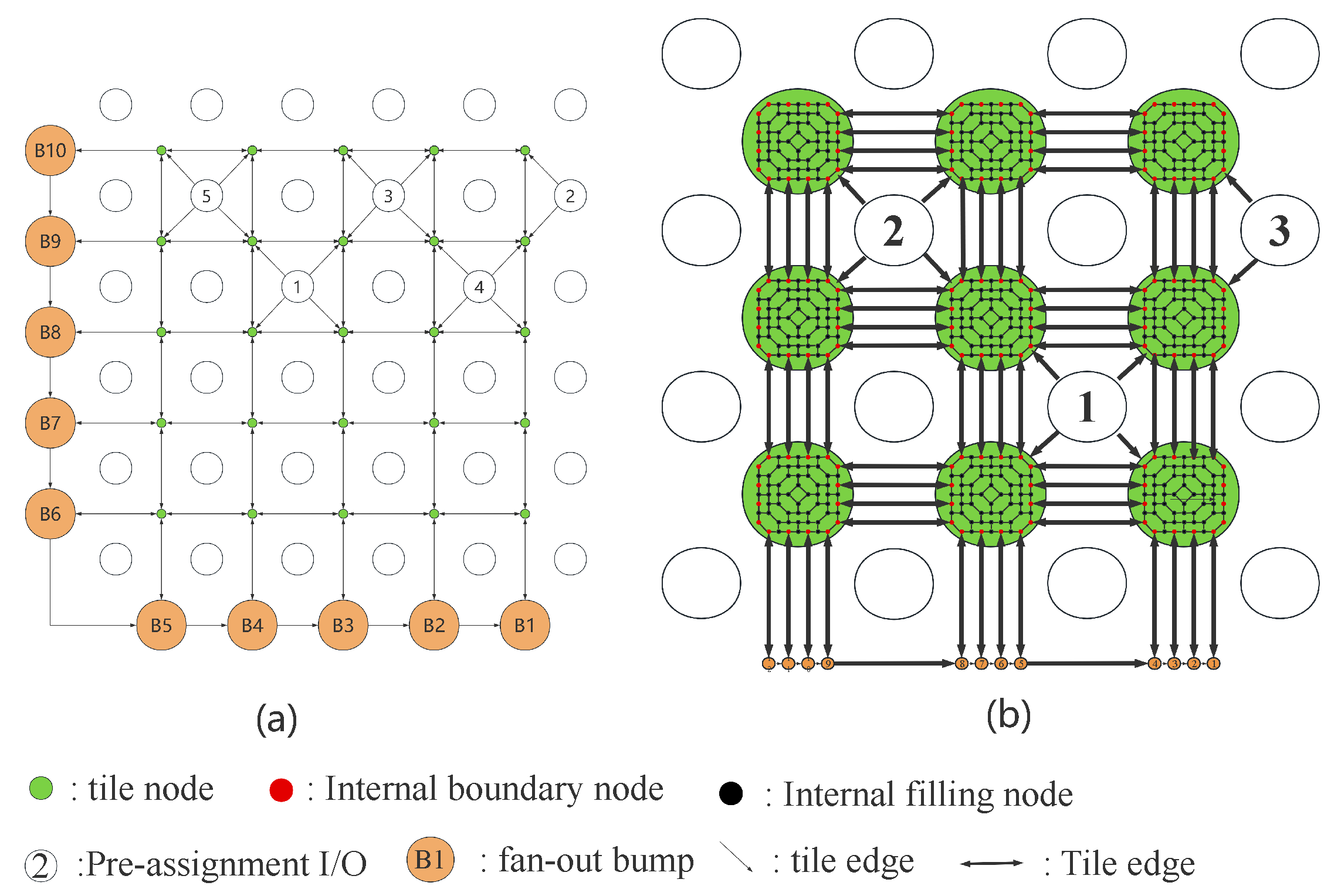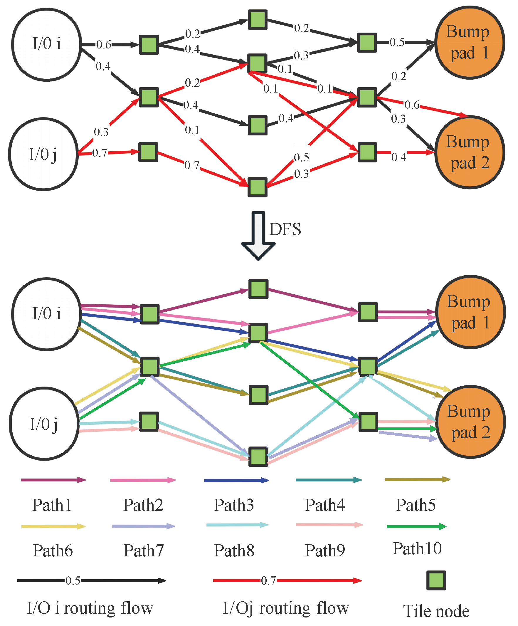 | Flow of I/O k in edge | PA routing | pre-assignment routing | |