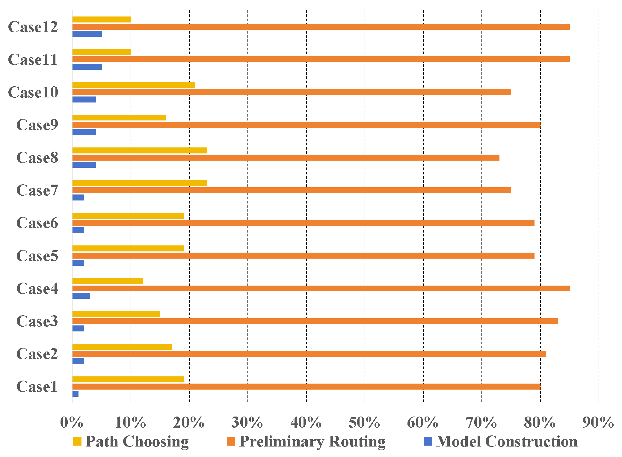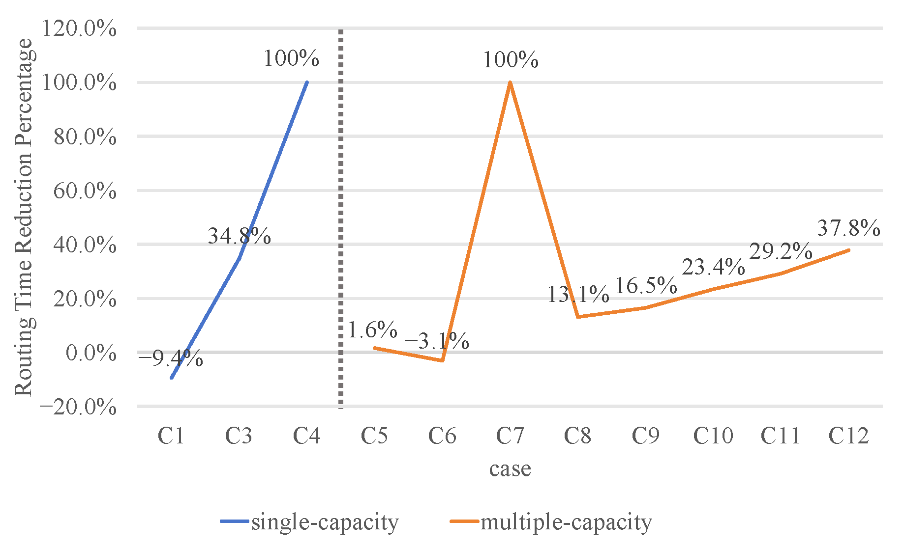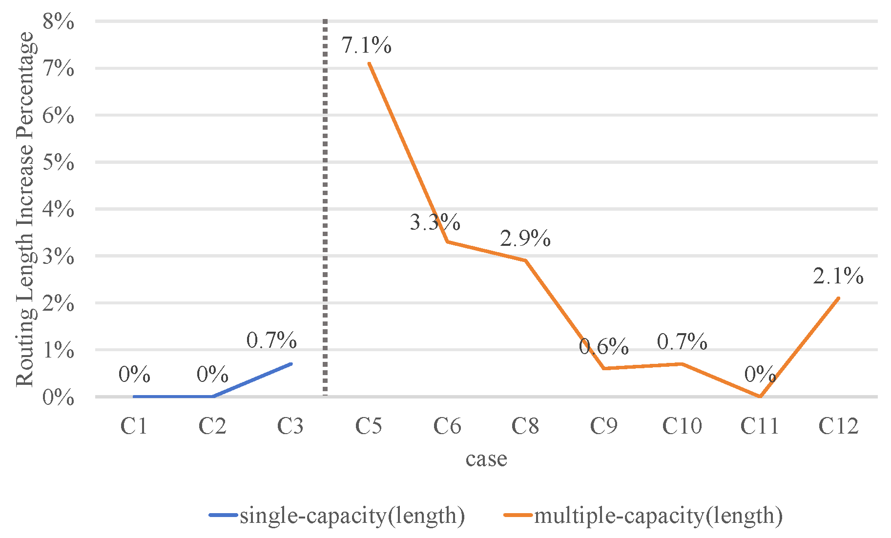- Experimental results demonstrate that our algorithm can solve fan-out WLCSP ordered routing problems with twice the scale and reduce routing time by 17% when handling multi-capacity ordered routing problems. The performance advantage of our algorithm becomes more evident as the routing capacity and scale increase.