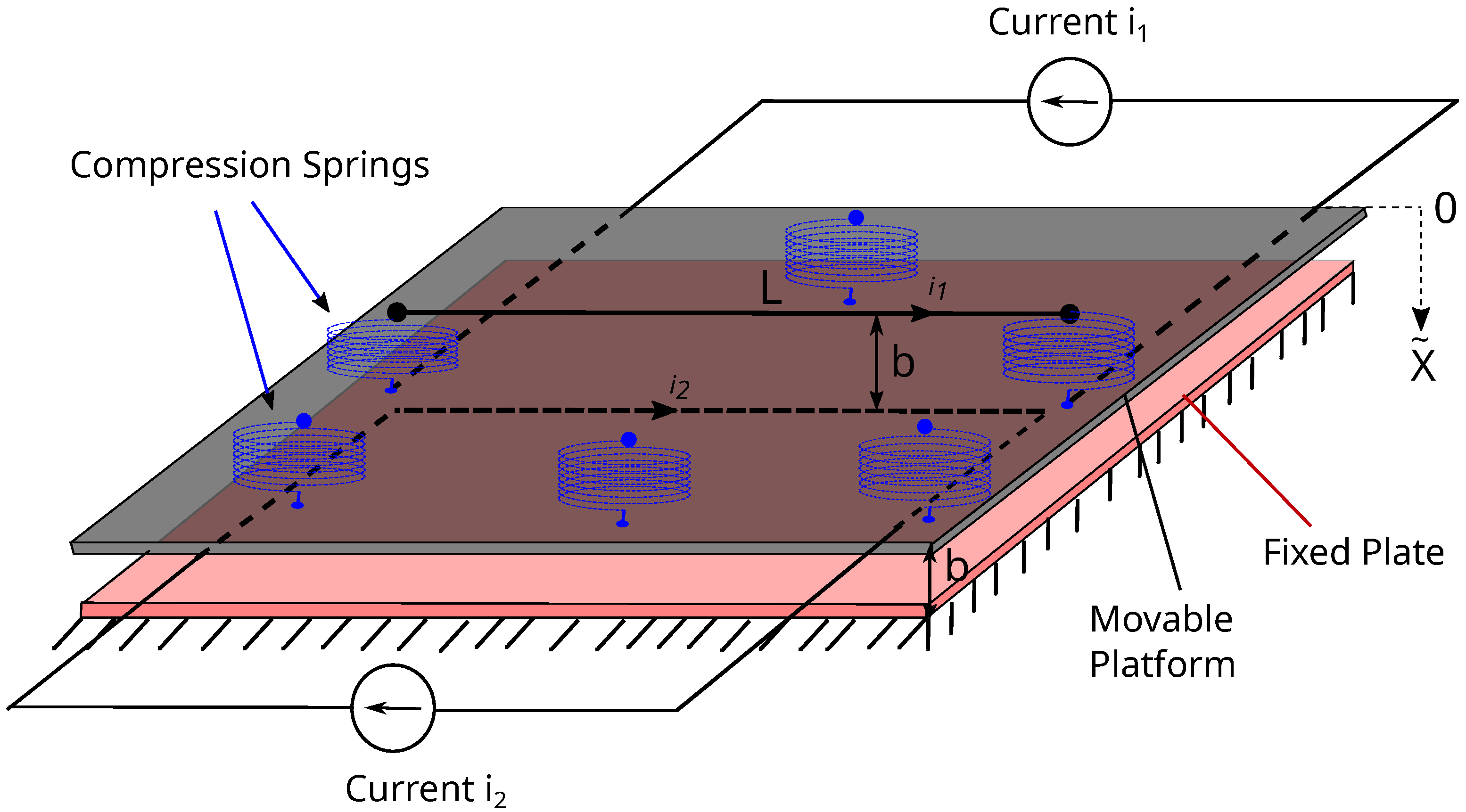 - He, J.-H.; Nurakhmetov, D.; Skrzypacz, P.; Wei, D. Dynamic Pull-in for Micro-Electro-Mechanical Device with a Current-Carrying Conductor. J. Low Freq. Noise Vib. Act. Control 2019, 40, 1059–1066. [Google Scholar] [CrossRef]