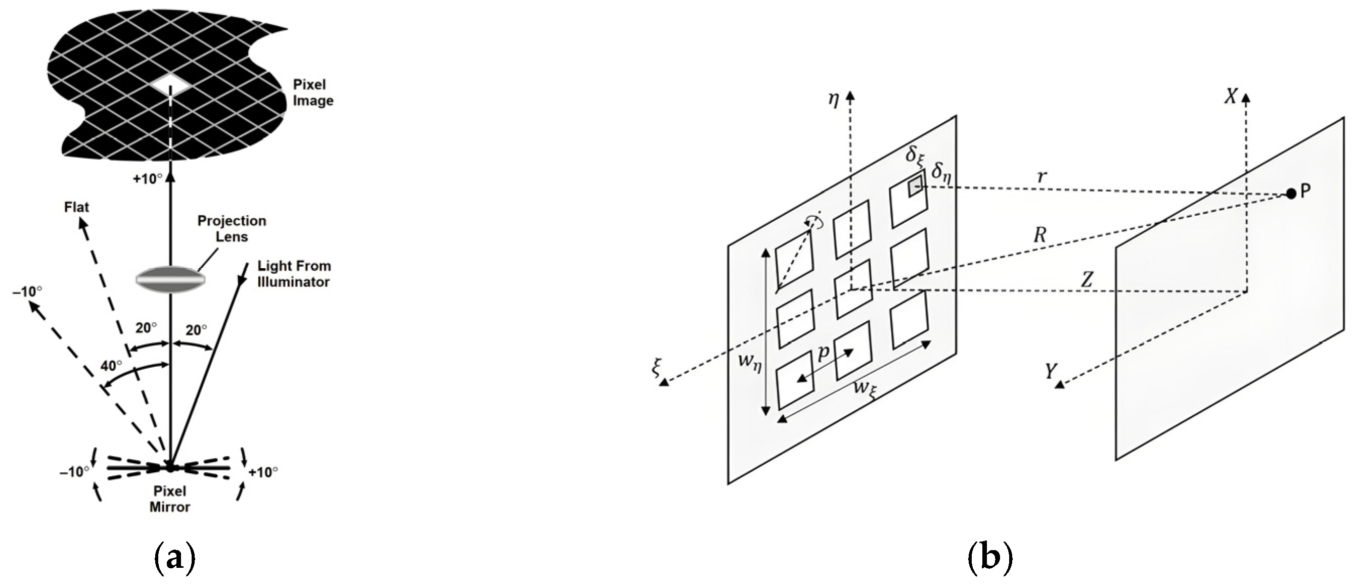 - Hornbeck, L.J. Digital light processing for high-brightness high-resolution applications. In Proceedings of the Projection Displays III; SPIE: Bellingham, WA, USA, 1997; pp. 27–40. [Google Scholar]