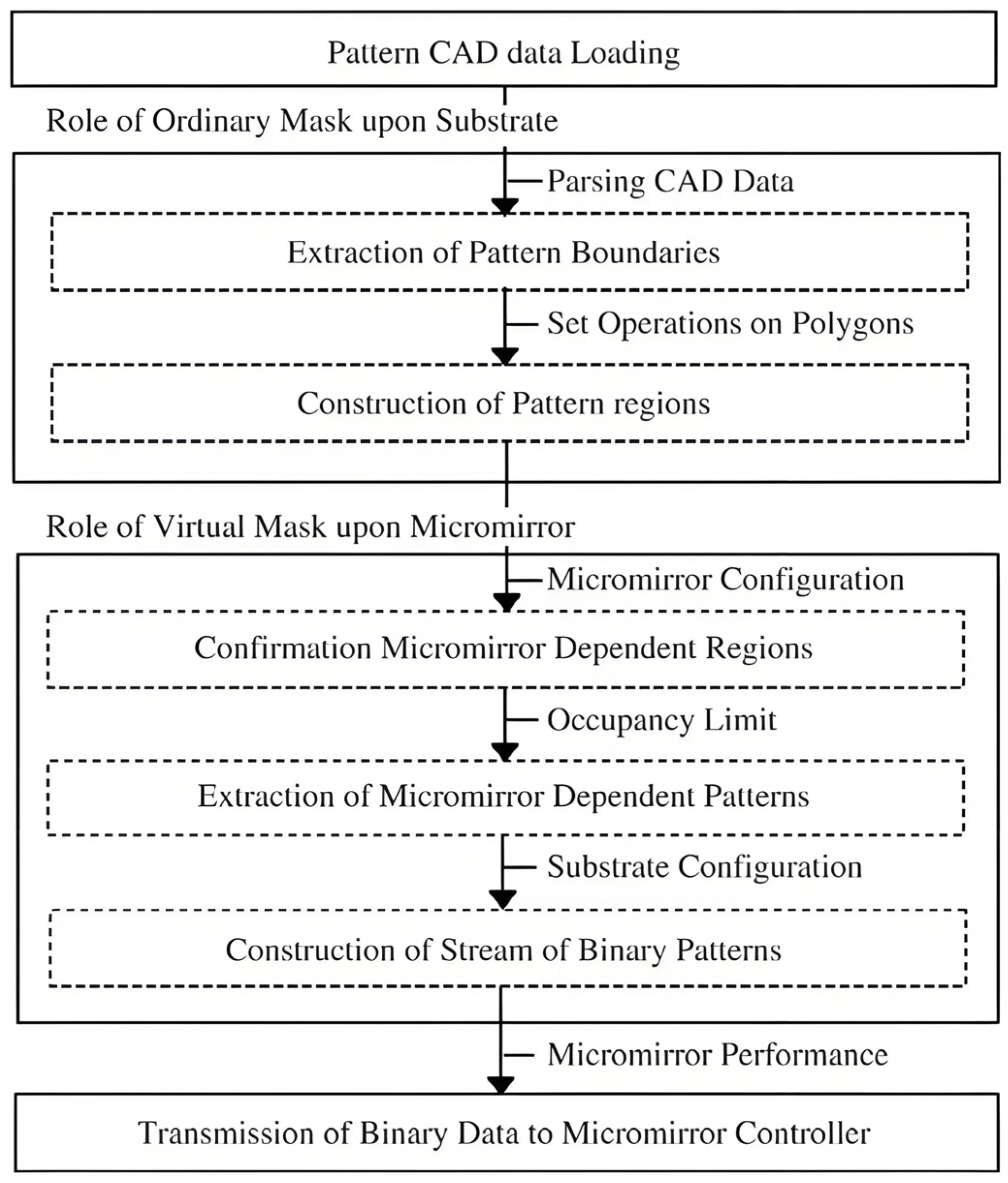 - Seo, M.; Song, J.; An, C. Region-based pattern generation scheme for DMD based maskless lithography. In Proceedings of the International Workshop on Graphics Recognition; Springer: Berlin/Heidelberg, Germany, 2005; pp. 108–119. [Google Scholar]