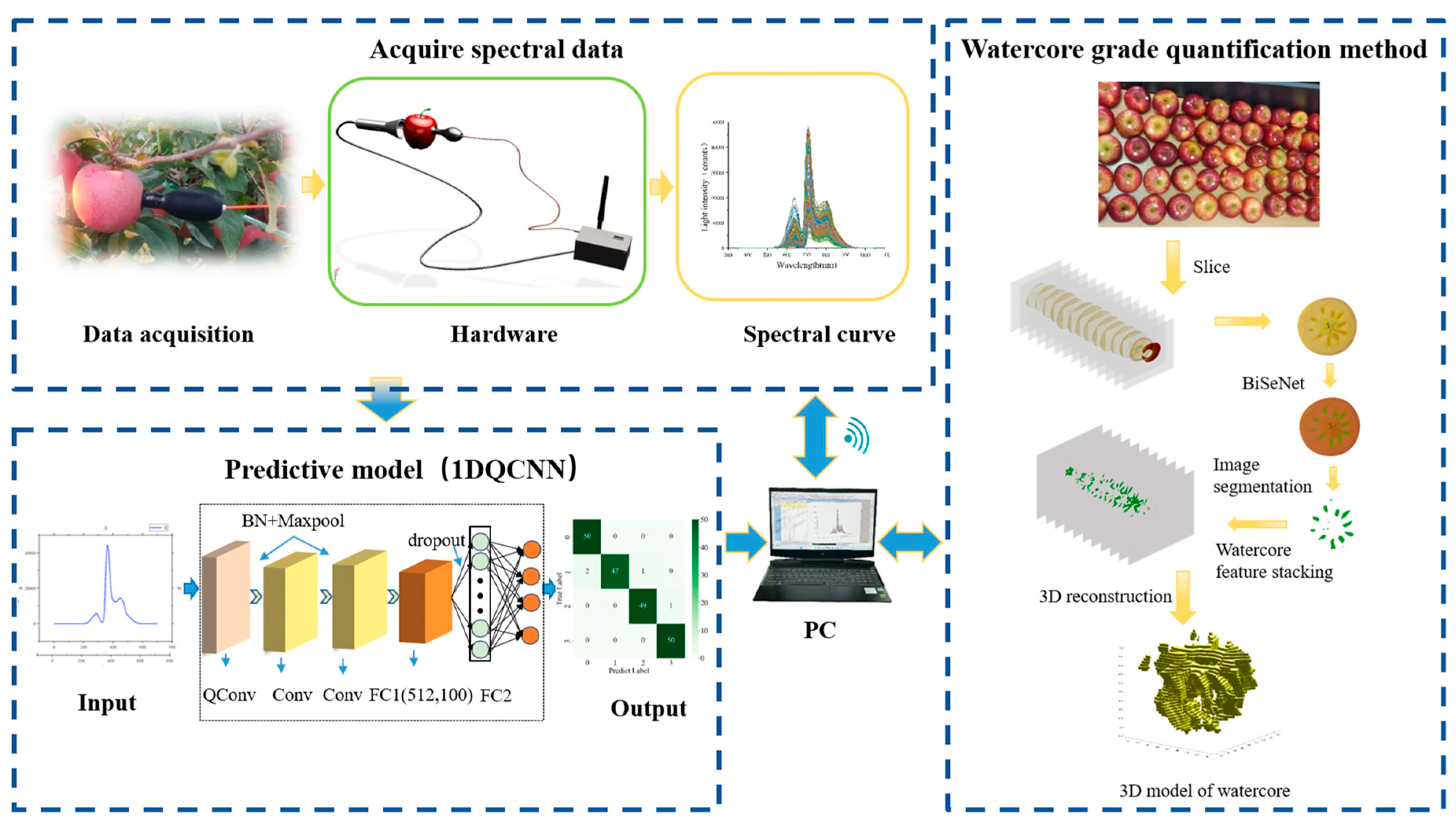 Wu H, Lin Y, Zhang W, Cao Z, Zhao C, Yin Z, Lu Y, Liu L, Hu D. Design of a Portable Nondestructive Instrument for Apple Watercore Grade Classification Based on 1DQCNN and Vis/NIR Spectroscopy. Micromachines. 2025; 16(12):1357. https://doi.org/10.3390/mi16121357