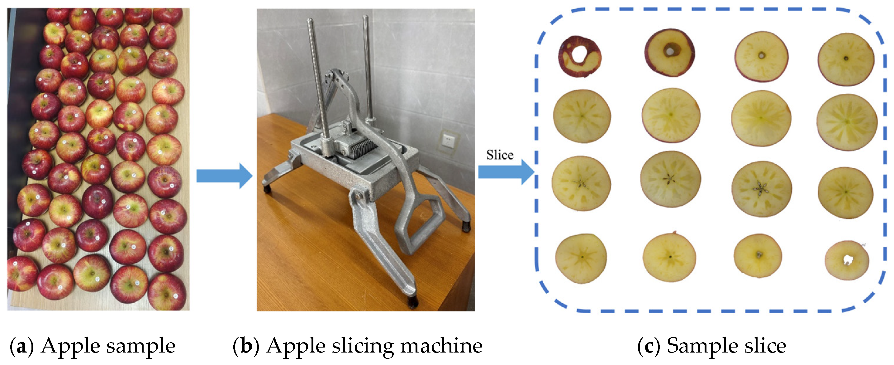 - Jiang, X.; Ge, K.; Liu, Z.; Chen, N.; Ouyang, A.; Liu, Y.; Huang, Y.; Li, J.; Hu, M. Non-destructive online detection of early moldy core apples based on Vis/NIR transmission spectroscopy. Chem. Biol. Technol. Agric. 2024, 11, 63. [Google Scholar] [CrossRef]