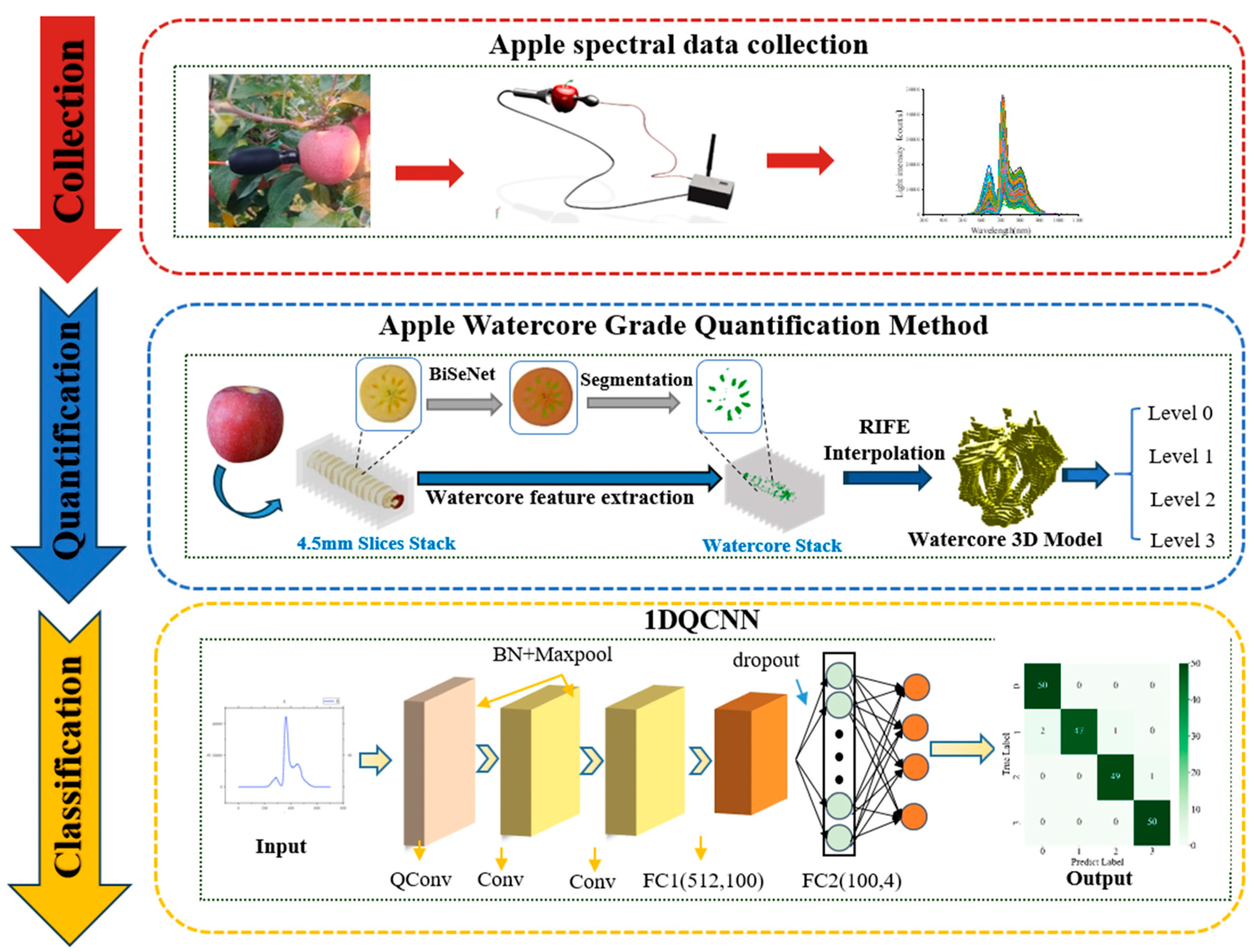 3.3. Apple Watercore Level Classification Method Based on 1DQCNN and Vis/NIR Spectroscopy Technology