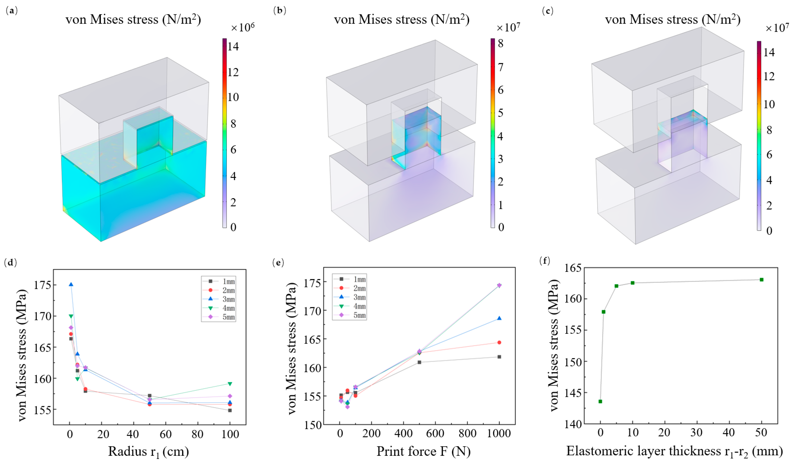 Figure 3f). Meanwhile, we found that the stress induced on the structure tends to stabilize once the thickness of the elastomeric layer exceeds a certain threshold. When the elastomeric layer thickness is zero (i.e., using a rigid roller), the stress induced on the structure decreases significantly (