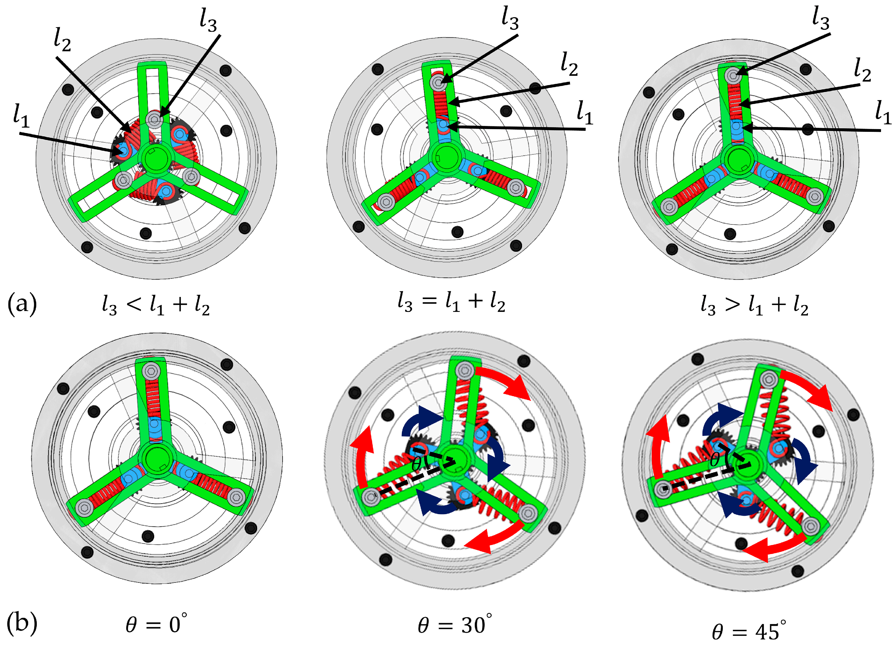 , the three-bar linkage assumes a collinear configuration, with a preload force being introduced exclusively when