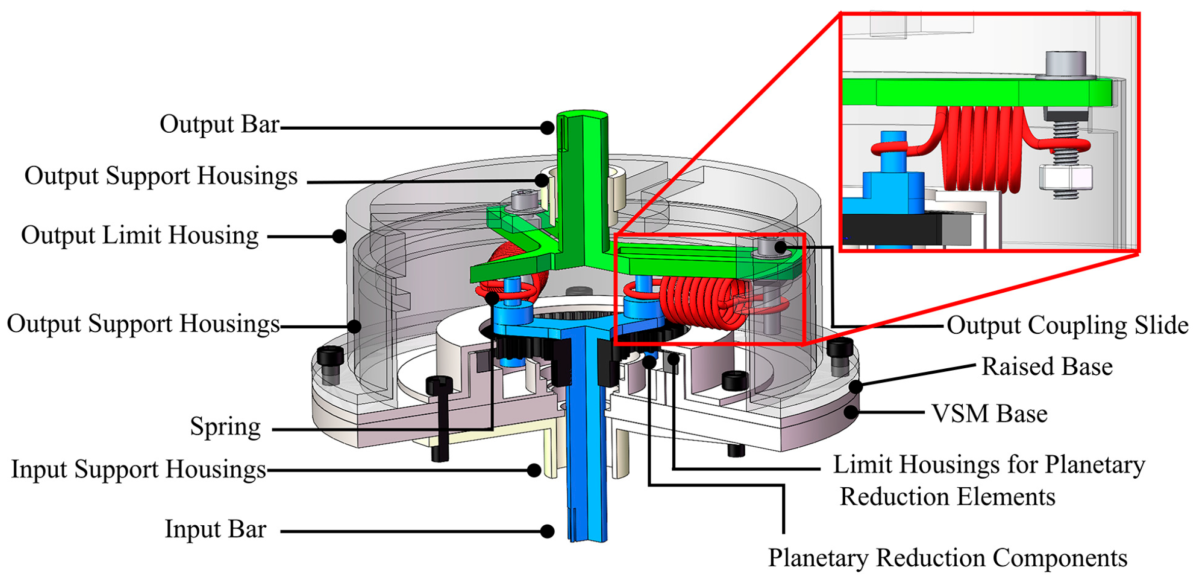 Leveraging the previously established principle of variable stiffness modulation, a reconfigurable VSM was developed comprising three functional stages. As shown in the enlarged view in