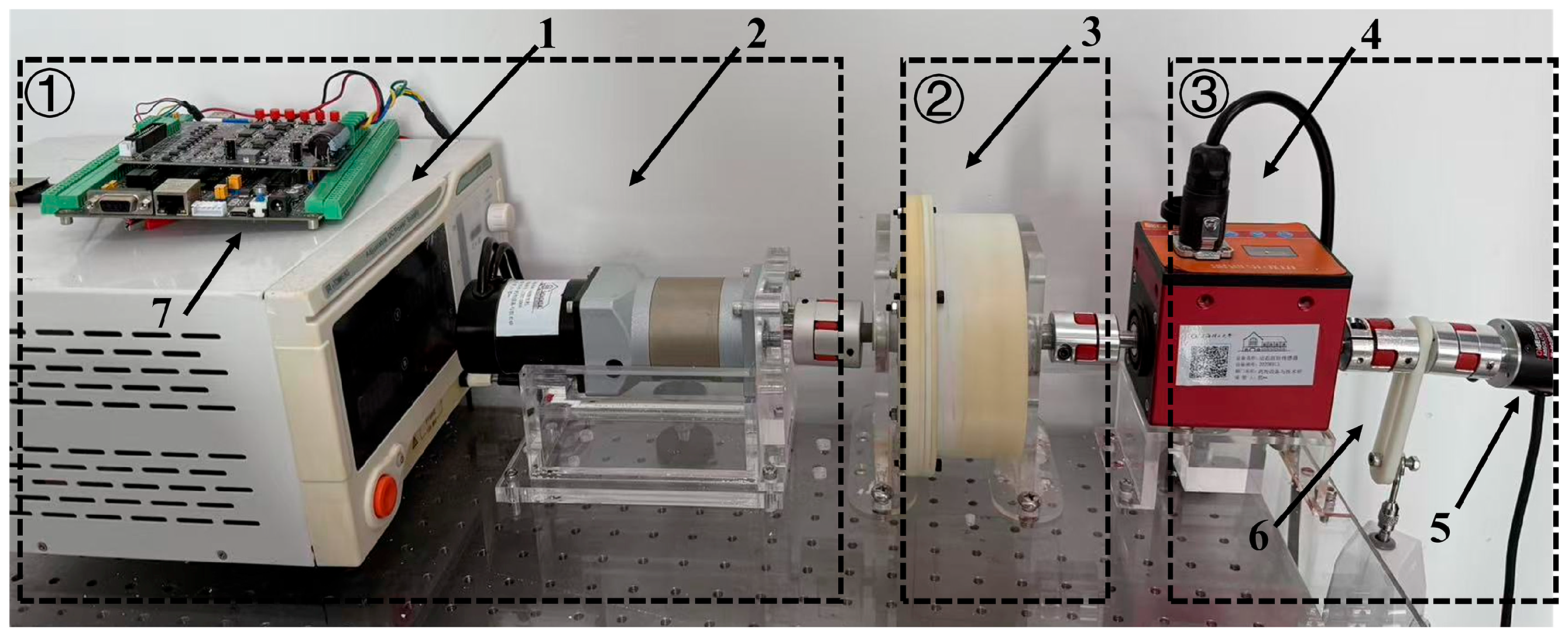The drive module consists of a position-controlled servo motor, which is realized as an integrated electromechanical assembly combining a brushless DC motor, a harmonic reducer, an optical encoder, and dedicated servo-drive electronics. The actuator is mounted onto the experimental platform via precision-machined brackets, providing controlled torque and positional input to the VSM. Command signals are regulated through a host computer, while rigid coupling interfaces at both termini ensure precise kinematic alignment among all subsystems.