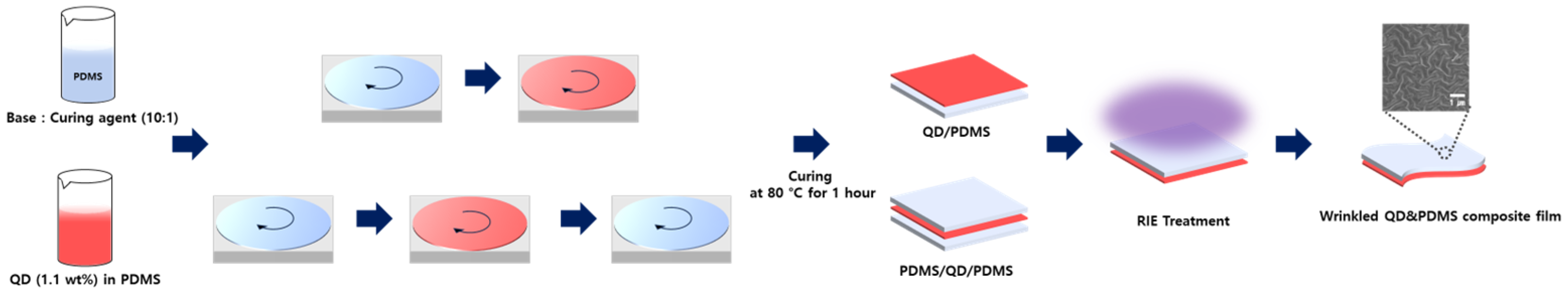 2.1. Fabrication of QD/PDMS and PDMS/QD/PDMS Composite Film