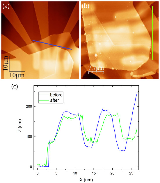- Wakolbinger, S.; Geisenhof, F.R.; Winterer, F.; Palmer, S.; Crimmann, J.G.; Watanabe, K.; Taniguchi, T.; Trixler, F.; Weitz, R.T. Locally-triggered hydrophobic collapse induces global interface self-cleaning in van-der-Waals heterostructures at room-temperature. 2D Mater. 2020, 7, 035002. [Google Scholar] [CrossRef]