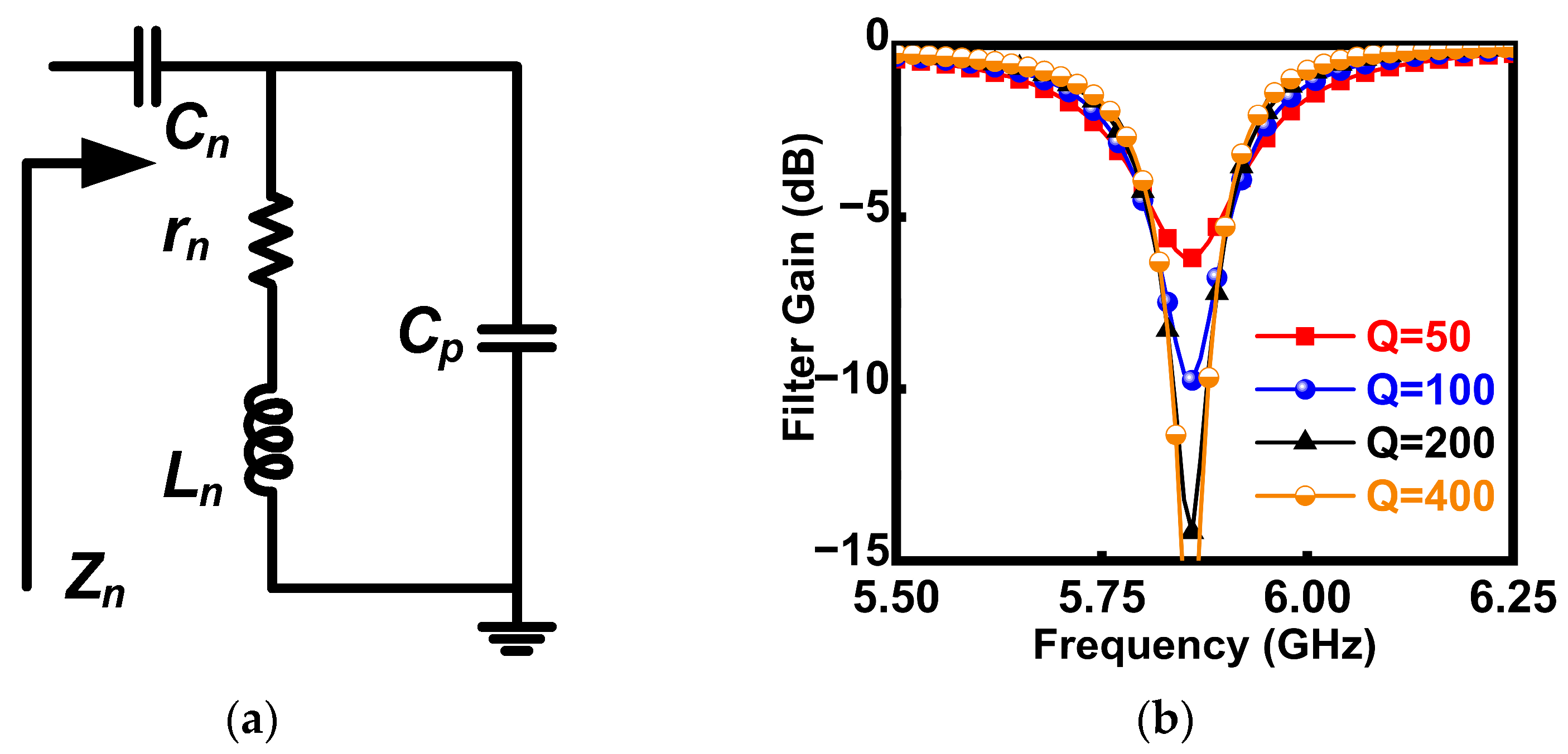- Chun, Y.-H.; Lee, J.-R.; Yun, S.-W.; Rhee, J.-K. Design of an RF low-noise bandpass filter using active capacitance circuit. IEEE Trans. Microw. Theory Tech. 2005, 53, 687–695. [Google Scholar] [CrossRef]
