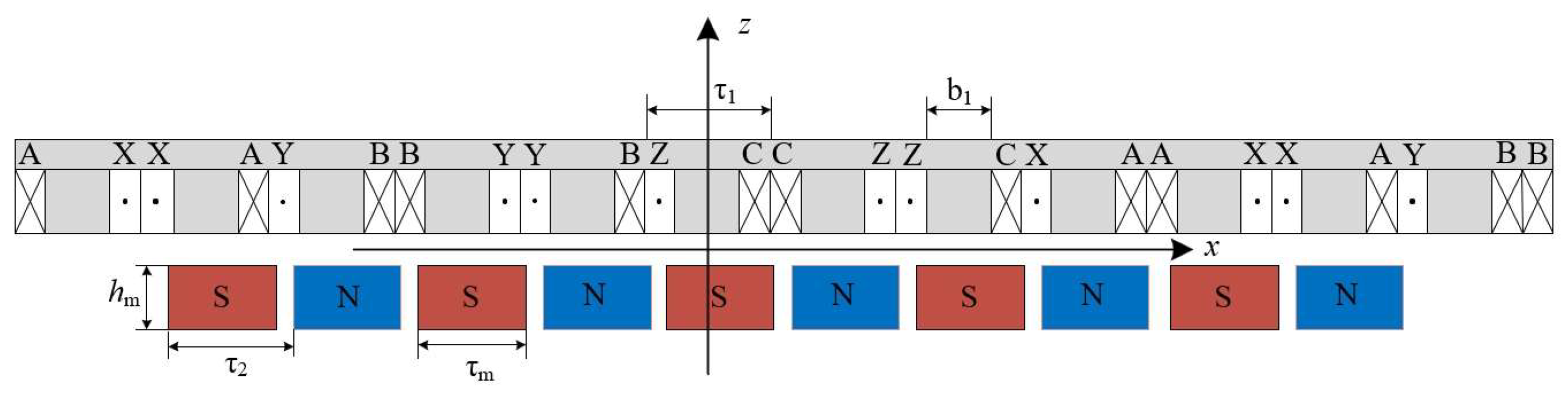 - Neglecting the leakage flux of windings and permanent magnets, the permanent magnets are uniformly magnetized.