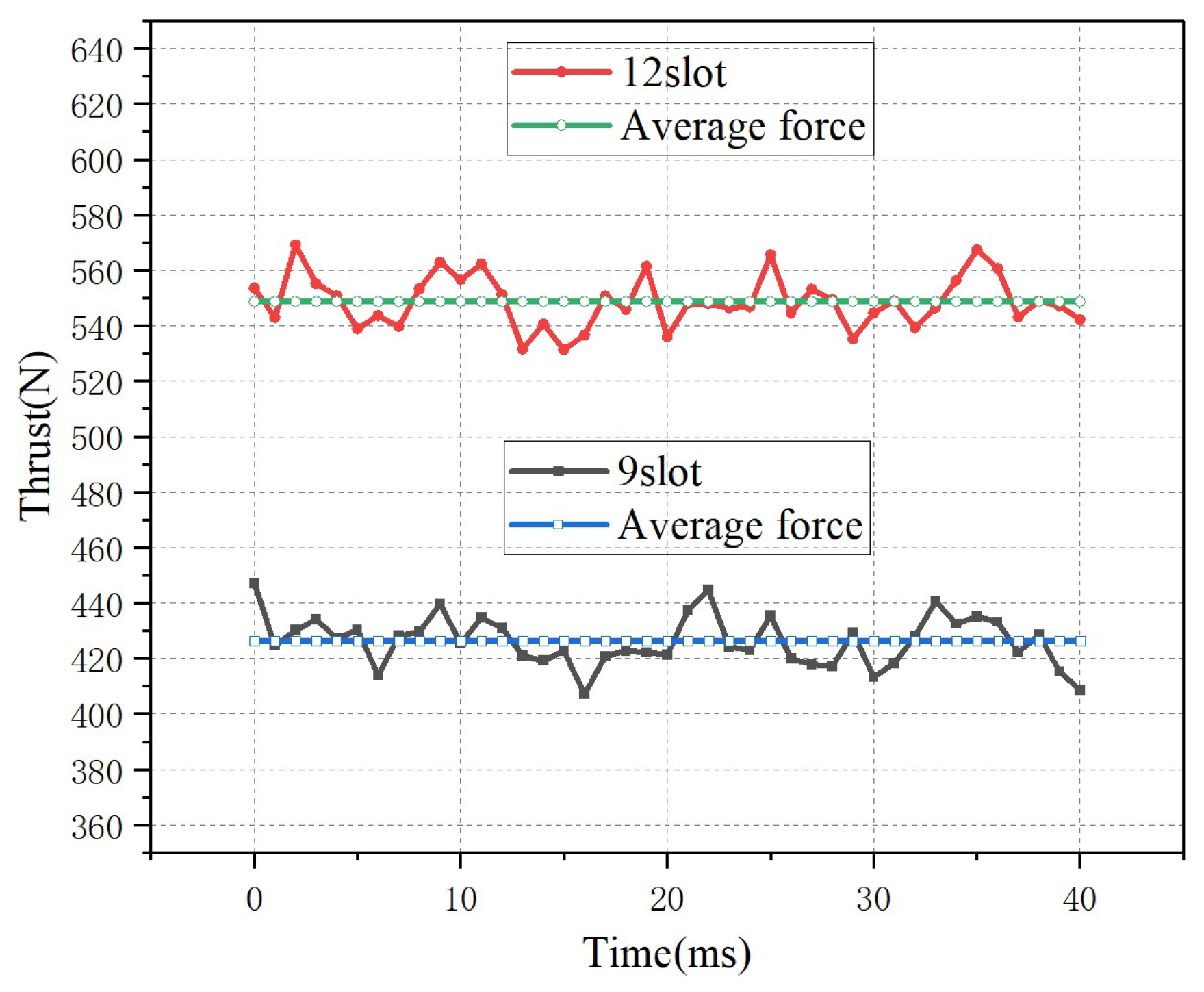 | Average Thrust (N) | 425 N | 549 N | The 12-slot structure provides greater average thrust. |