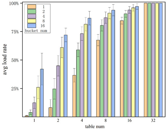 As depicted in Figure 9, our experimental results show a significant improvement in load factor when the number of sub-tables reaches 128 or higher.