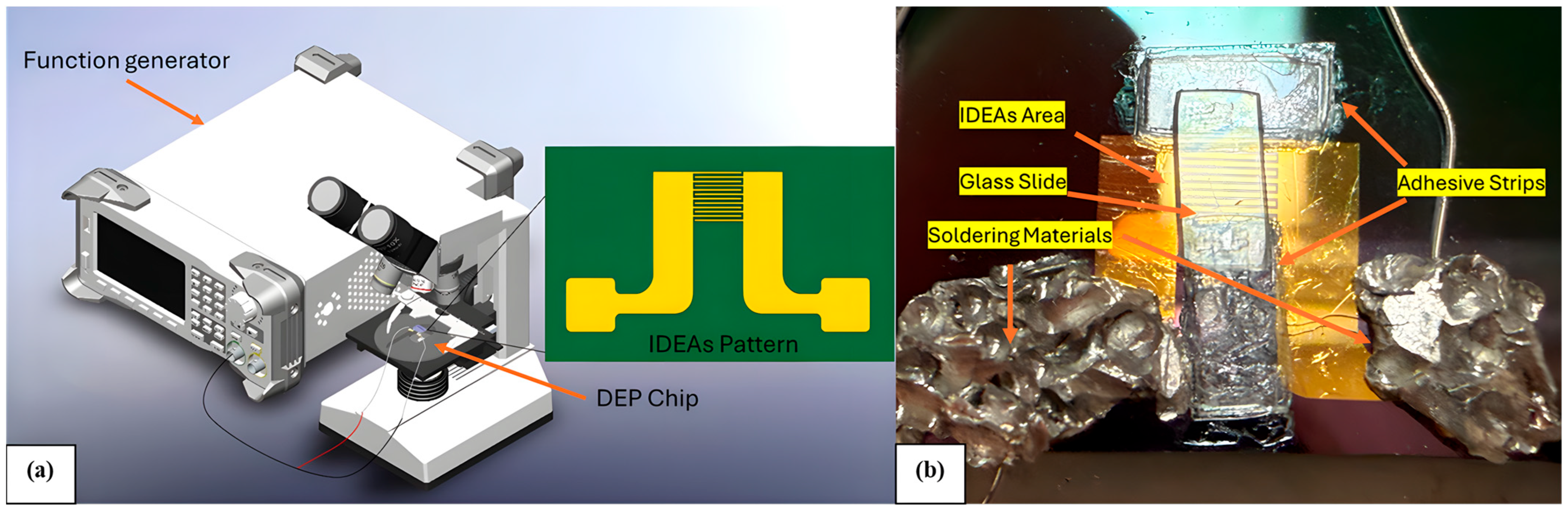 - Yao, J.; Zhao, K.; Lou, J.; Zhang, K. Recent advances in dielectrophoretic manipulation and separation of microparticles and biological cells. Biosensors 2024, 14, 417. [Google Scholar] [CrossRef]
