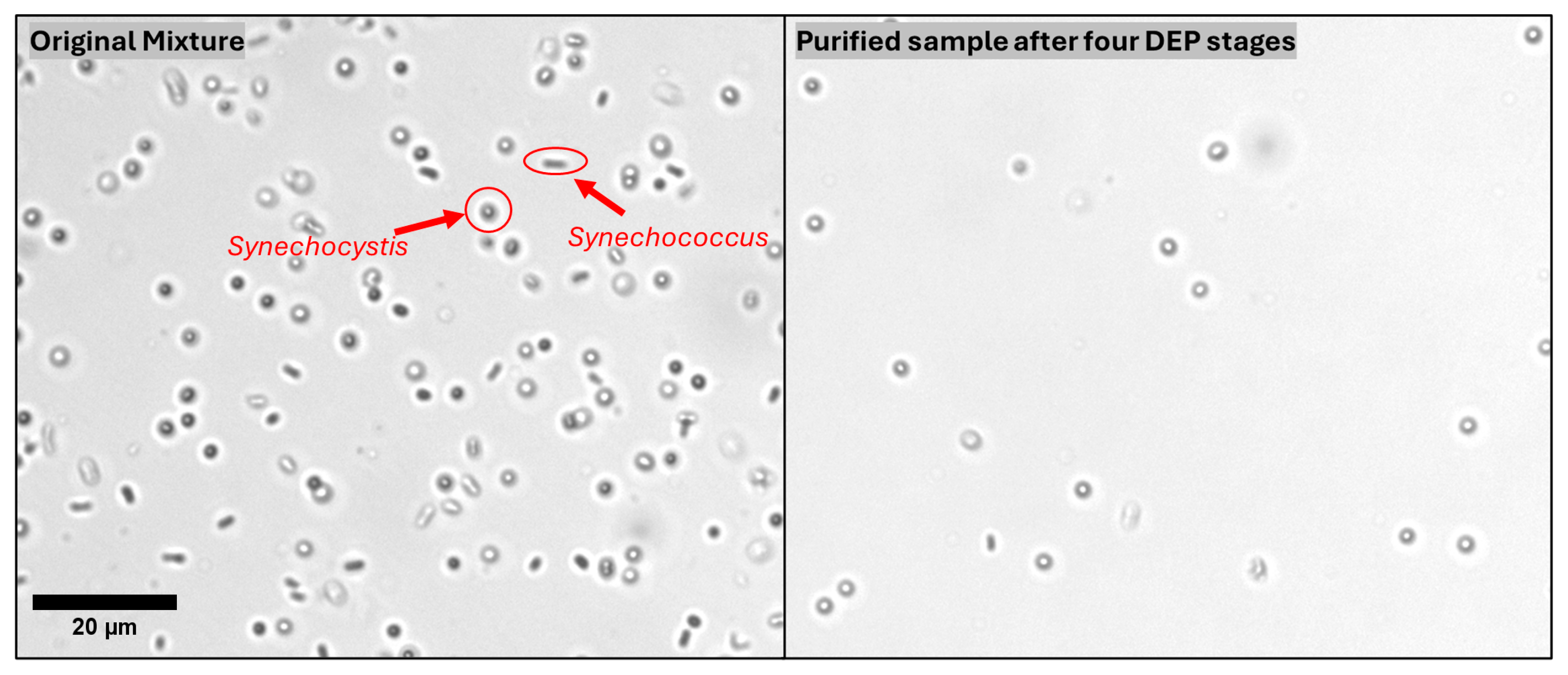 Yan, S.; Pacheco, S.L.; Laskie, A.K.; Gonzalez Esquer, C.R.; Kulinsky, L. Cascade Dielectrophoretic Separation for Selective Enrichment of Polyhydroxybutyrate (PHB)-Producing Cyanobacterium Synechocystis sp. PCC 6803. Micromachines 2025, 16, 1402. https://doi.org/10.3390/mi16121402