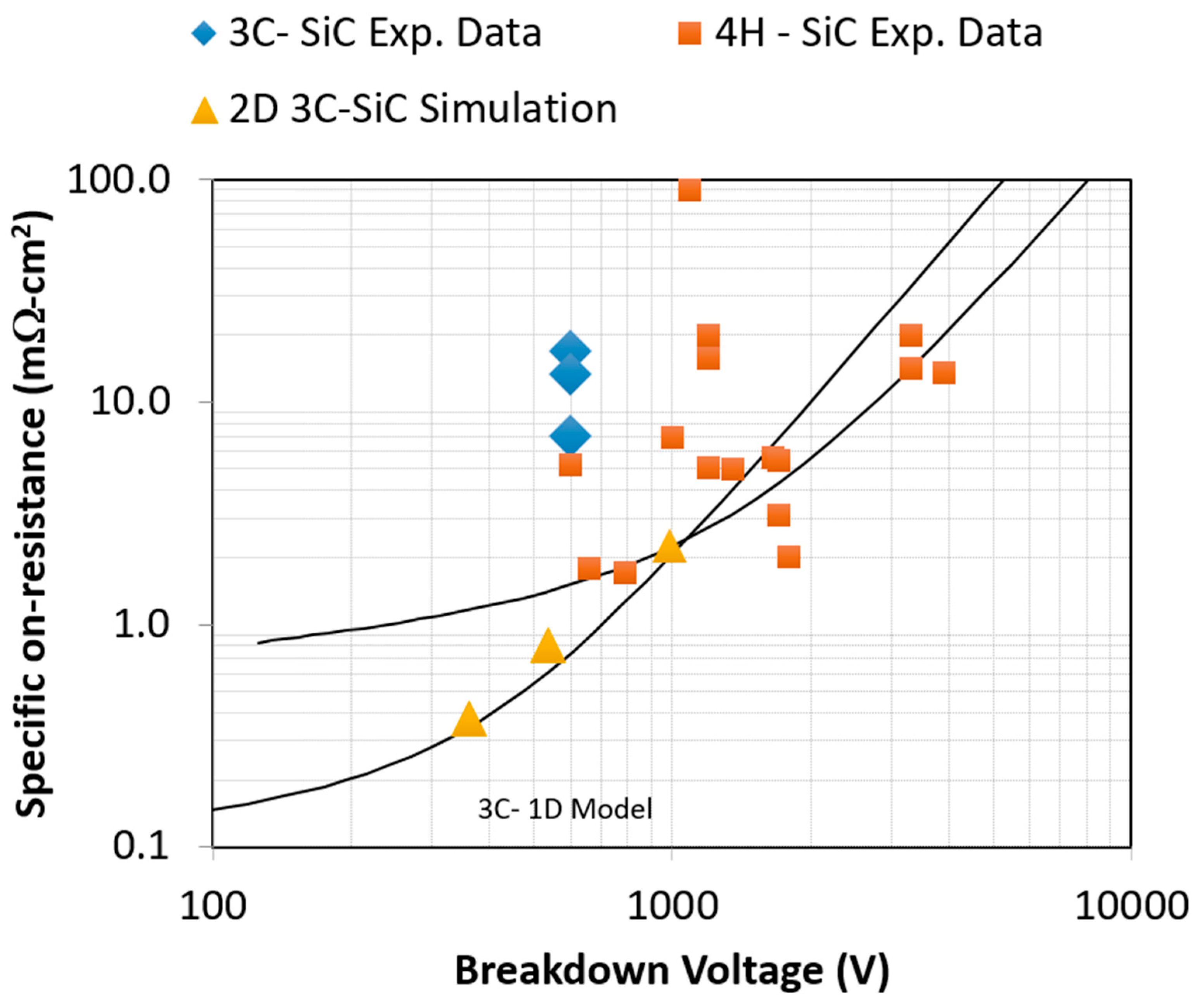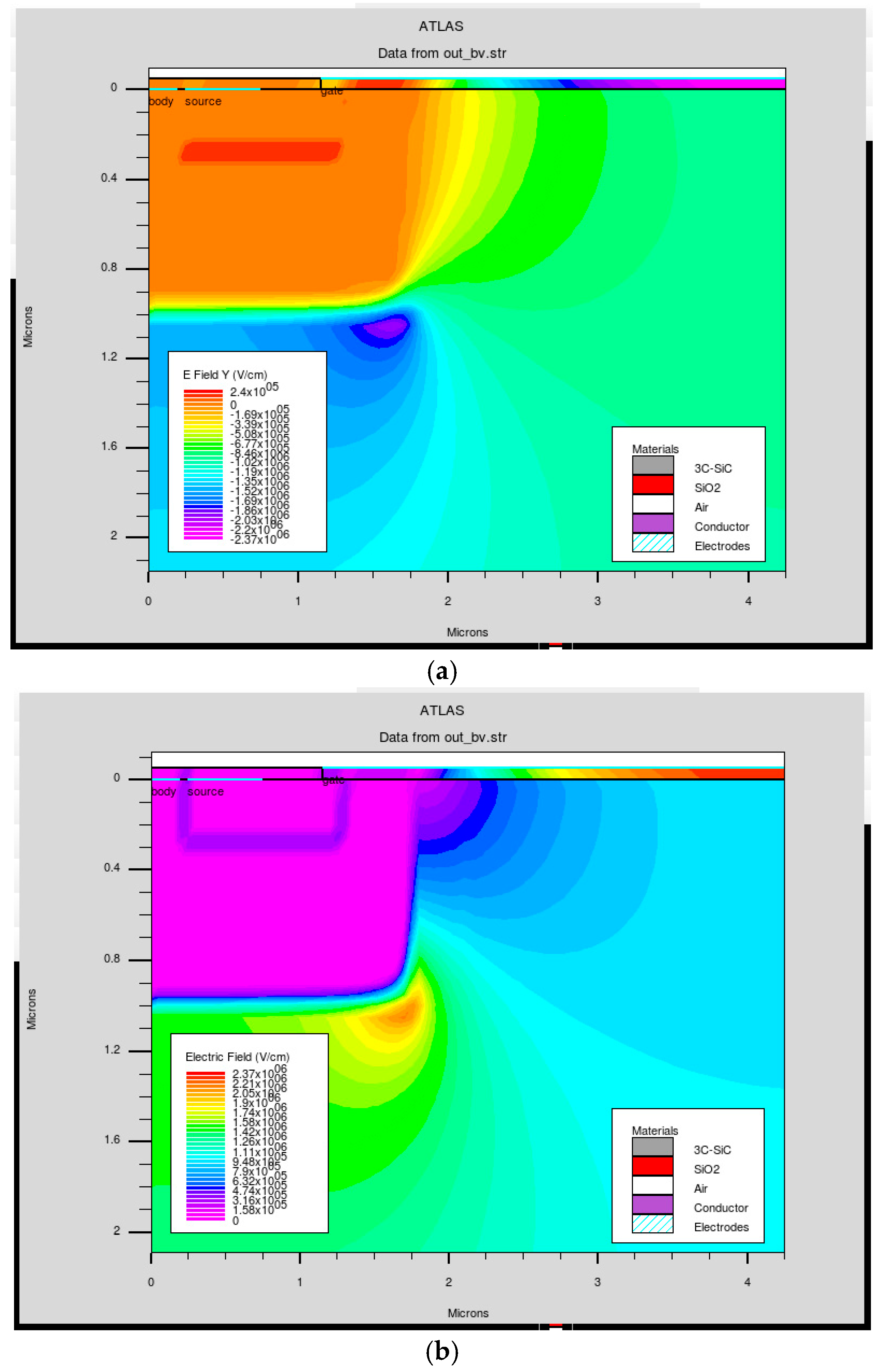 - Fardi, H.; Van Zeghbroeck, B. Breakdown field model for 3C-SiC power device simulations. Mater. Sci. Forum 2018, 924, 627–630. [Google Scholar] [CrossRef]