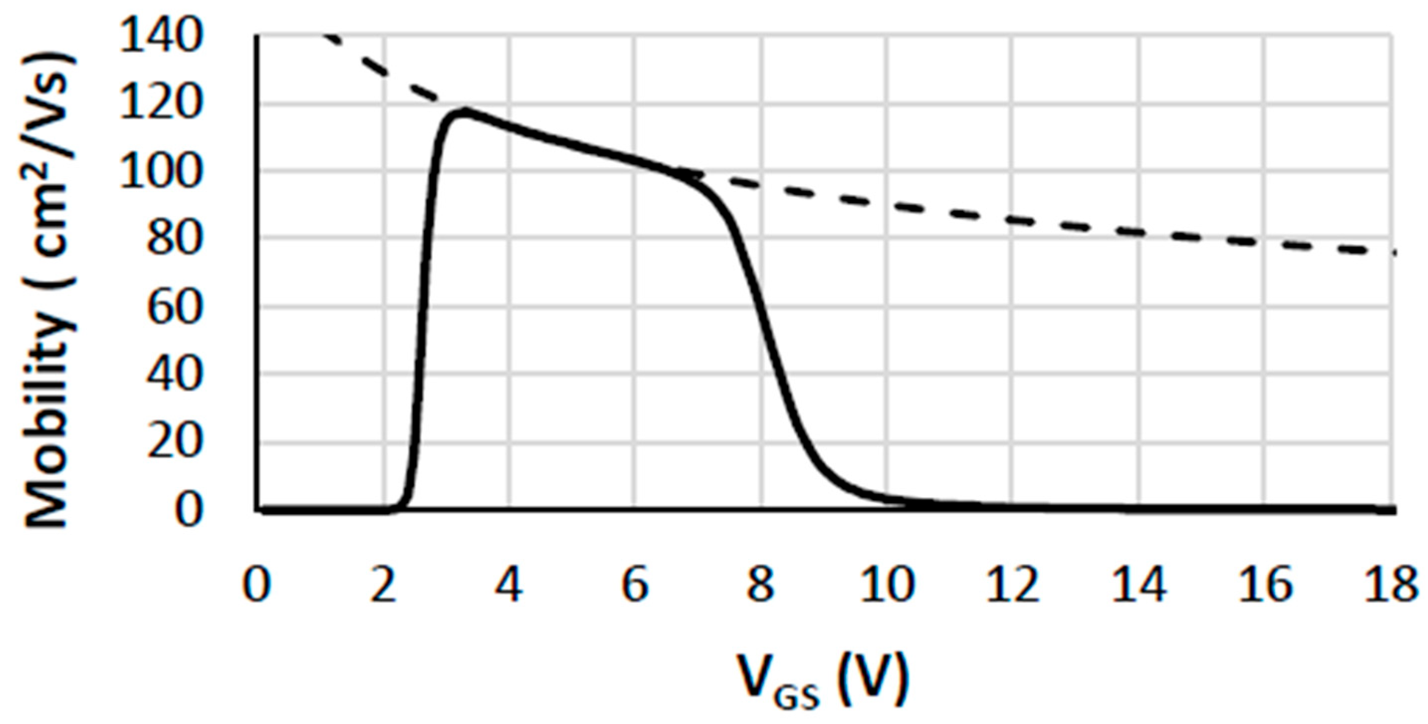 - Lichtenwalner, D.J.; Pala, V.; Hull, B.; Allen, S.; Palmour, J.W. High-mobility SiC MOSFETs with alkaline earth interface passivation. Mater. Sci. Forum 2016, 858, 671–676. [Google Scholar] [CrossRef]