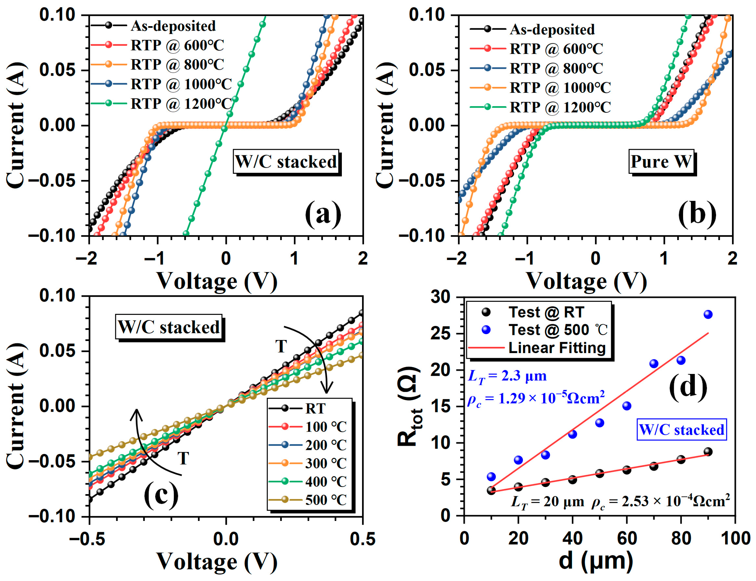 Chicago/Turabian StyleZhou, Yu, Fengyu Du, Qingwen Song, Xiaoyan Tang, Hao Yuan, Chao Han, Chunfu Zhang, and Yuming Zhang. 2025. "A High-Temperature Stable Ohmic Contact Process on Lightly Doped n-Type 4H-SiC Based on a W/C Multilayer Structure" Micromachines 16, no. 12: 1408. https://doi.org/10.3390/mi16121408