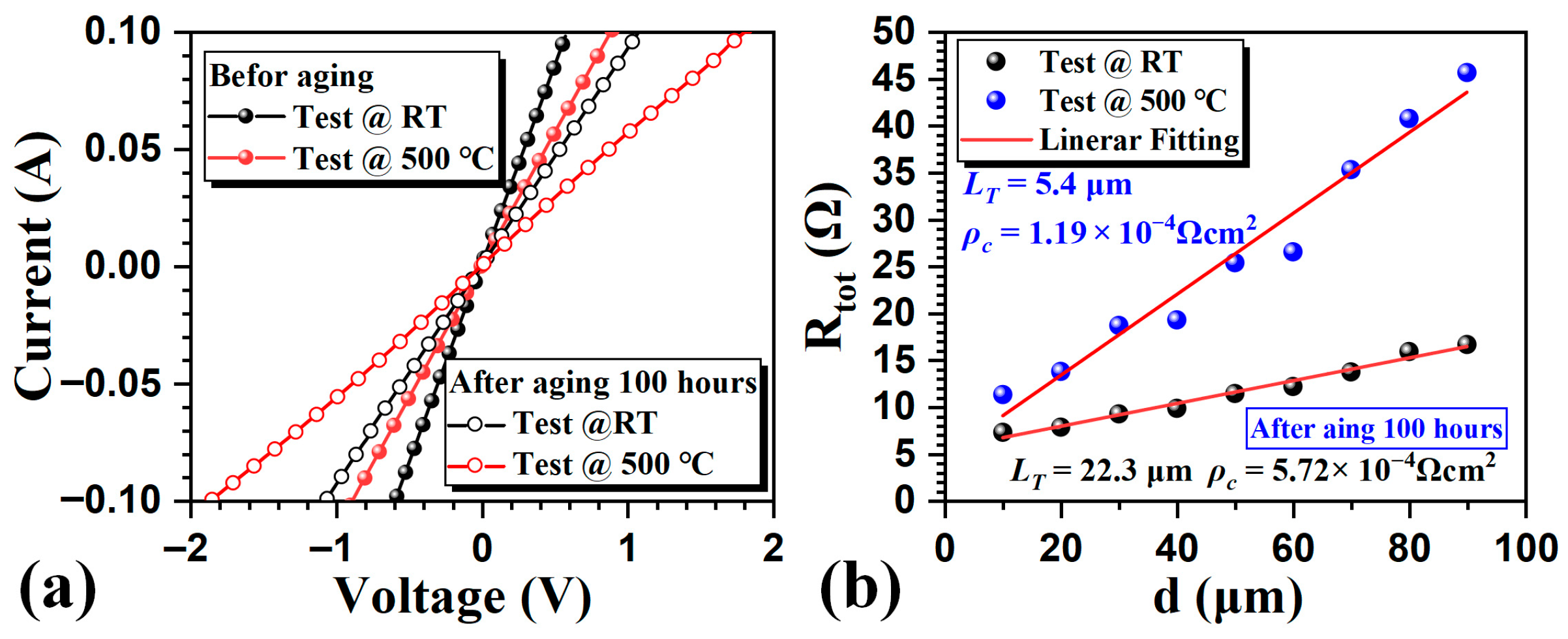 | Metal | Doping Concentration (×1015 cm−3) | Aging Conditions | ρc (×10−5 Ω·cm2) Before/After | Ref. |