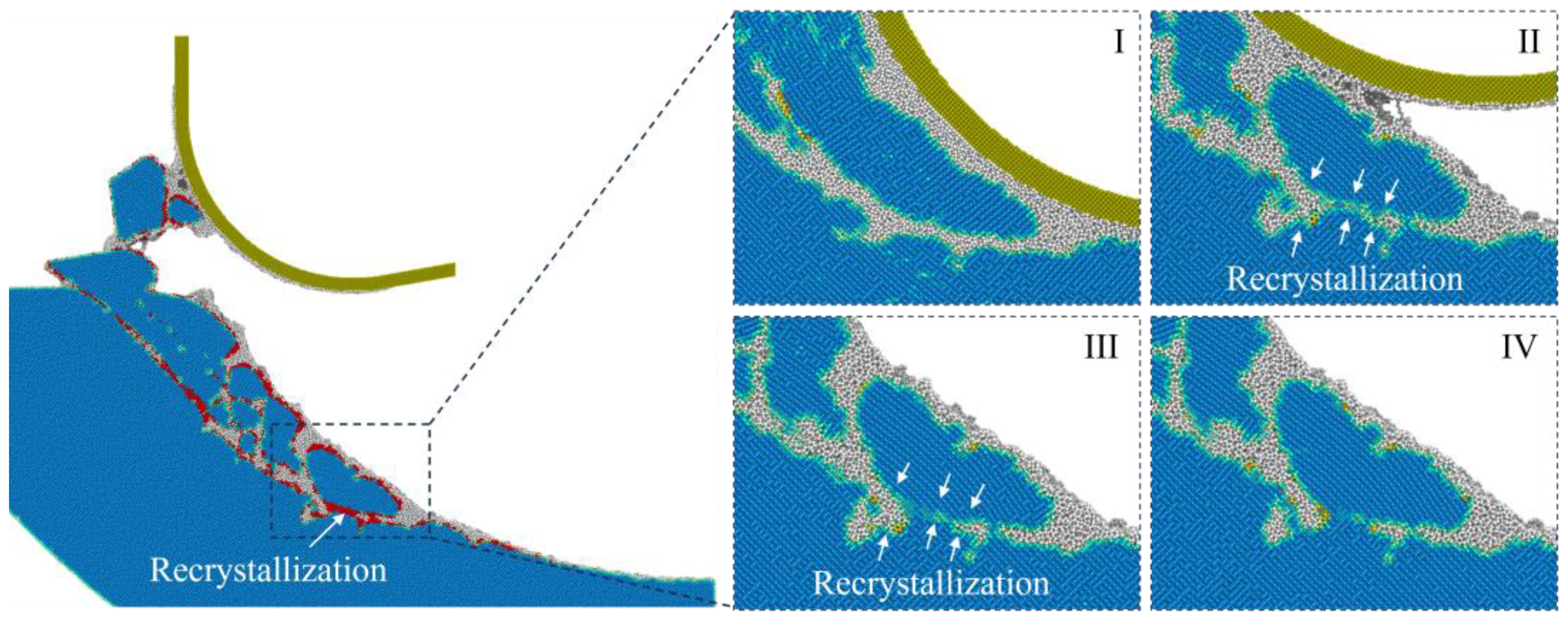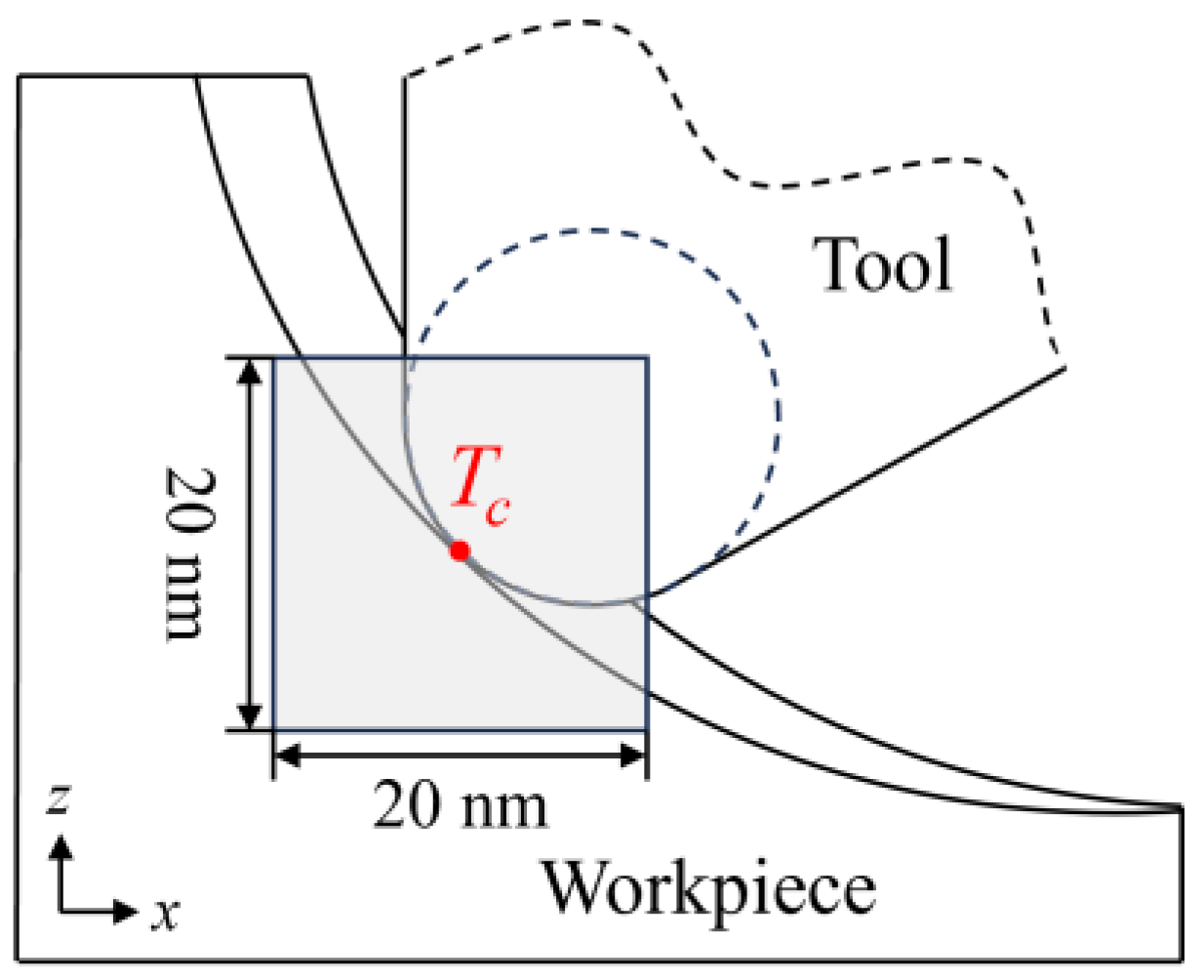 - Liu, C.; Xu, W.; Zhang, J.; Xiao, J.; Chen, X.; Xu, J. Numerical investigation on the temperature effect in nanometric cutting of polycrystalline silicon. Int. J. Mech. Sci. 2022, 220, 107172. [Google Scholar] [CrossRef]