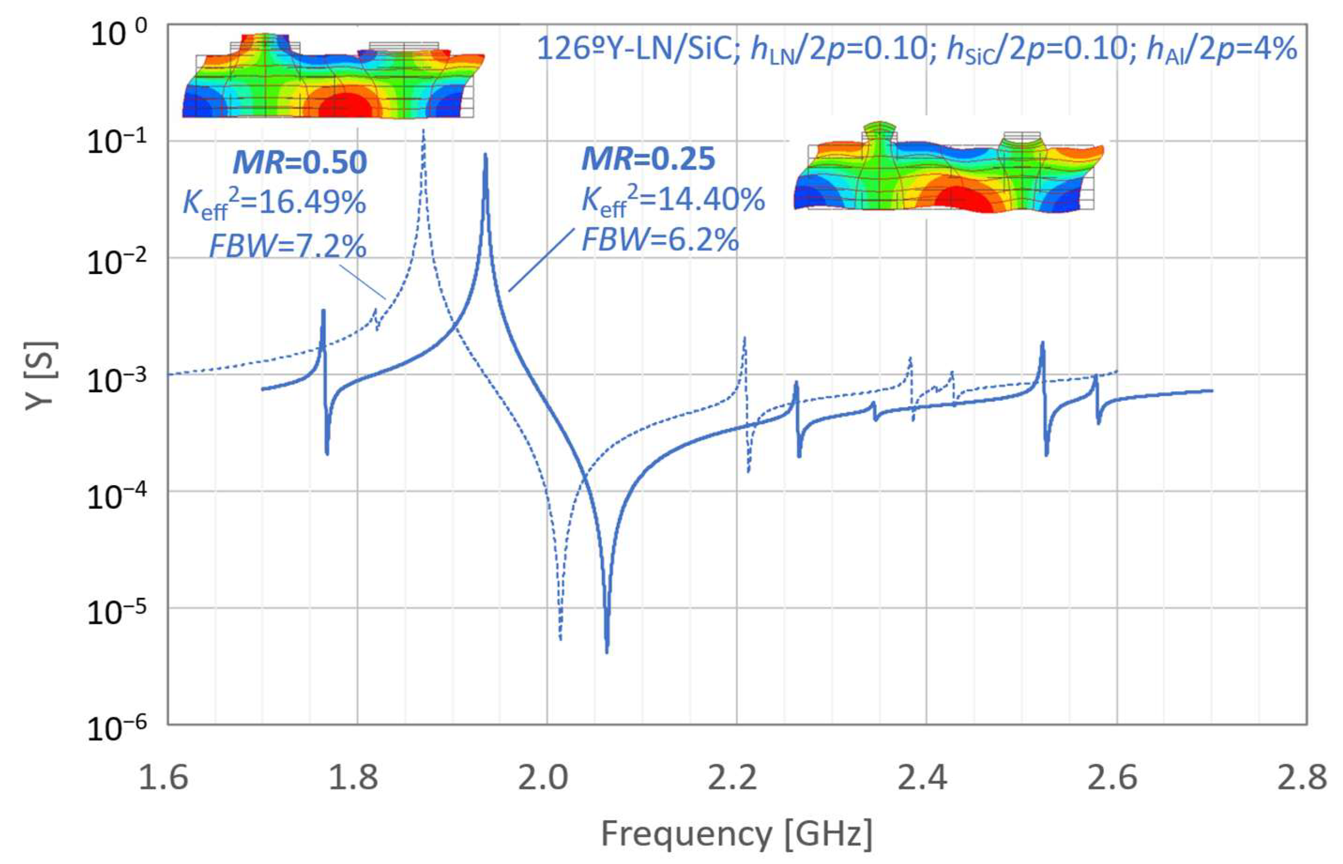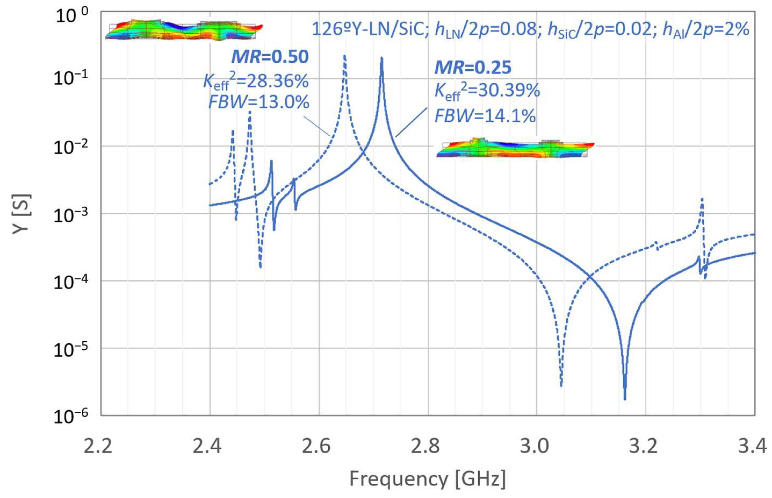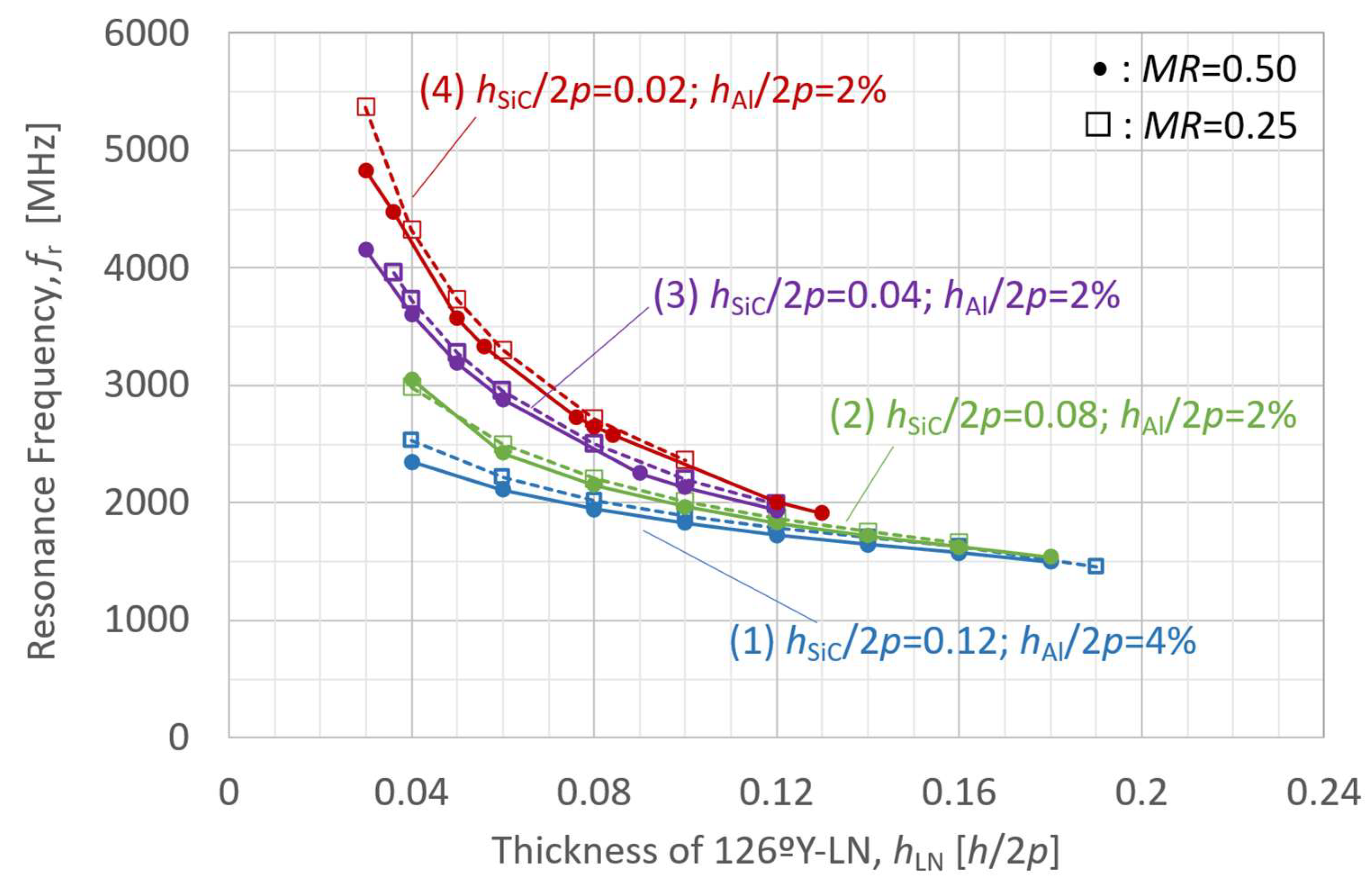 - LN/SiC: hLN/2p = 0.10; hSiC/2p = 0.10; hAl/2p = 4%; MR = 0.50.