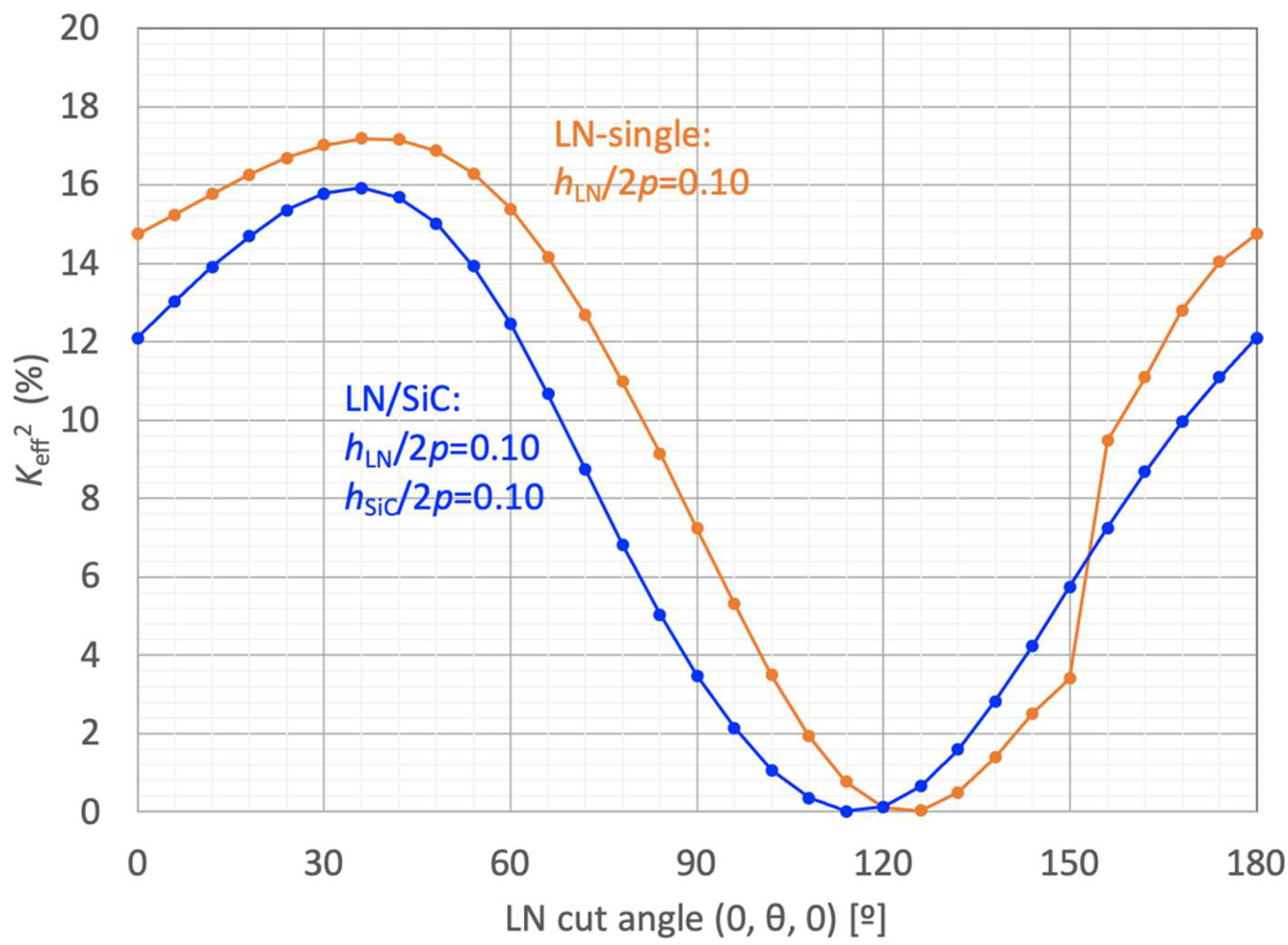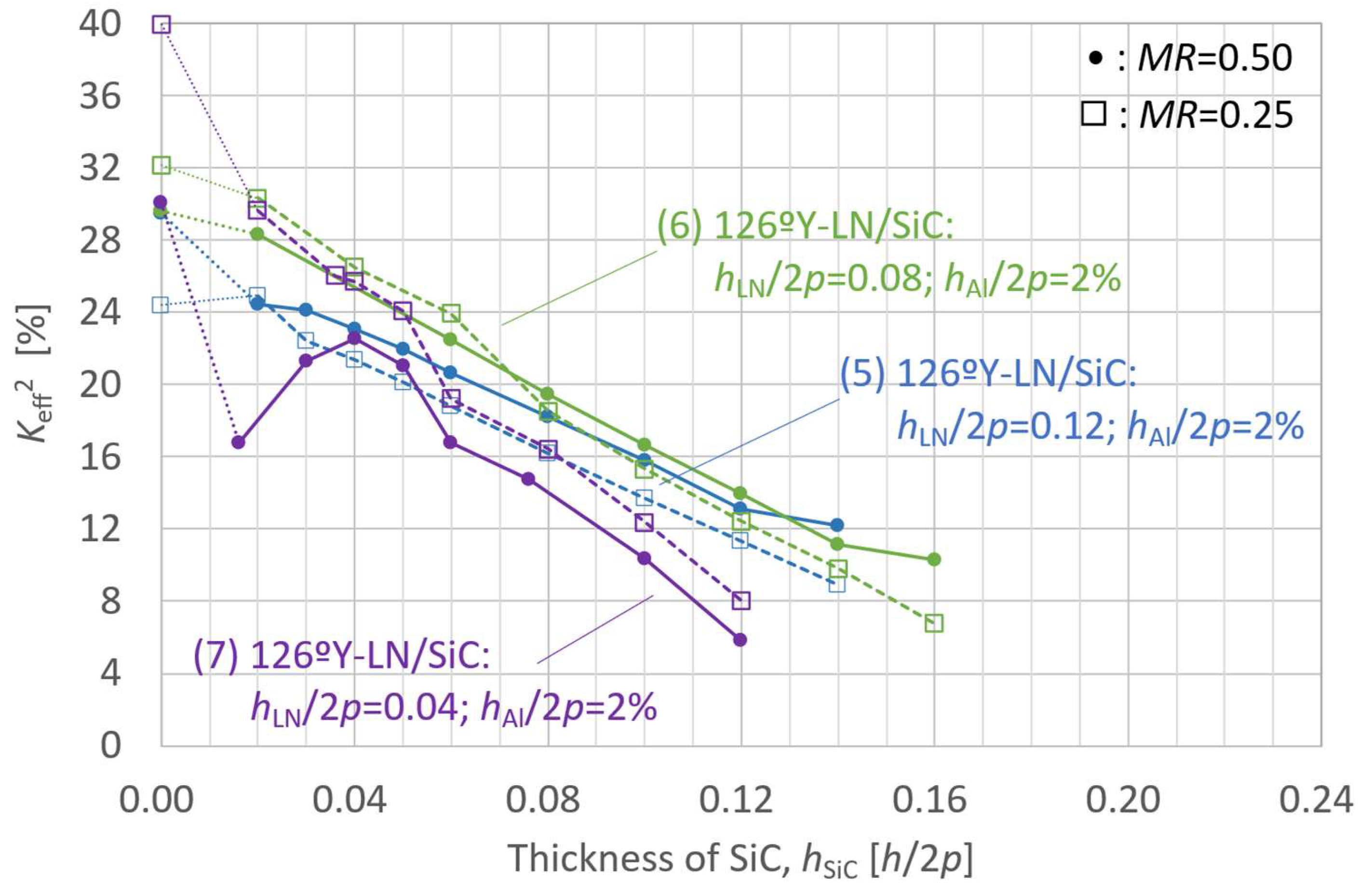| Figure 10 and Figure 11 | (5) | LN/SiC | 126ºY | 0.12 | 0.0–0.14 | 2.0% | 050, 0.25 |
