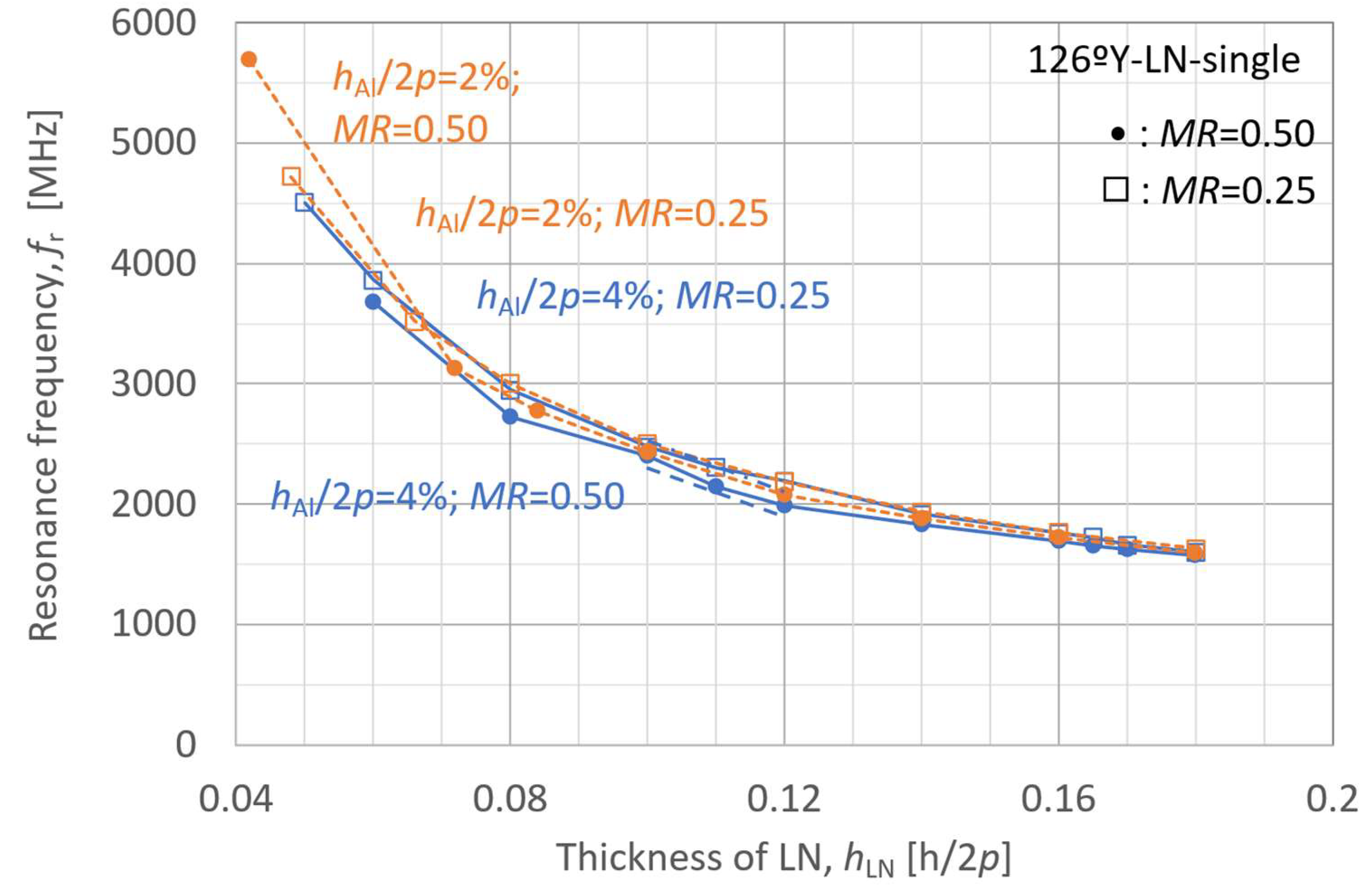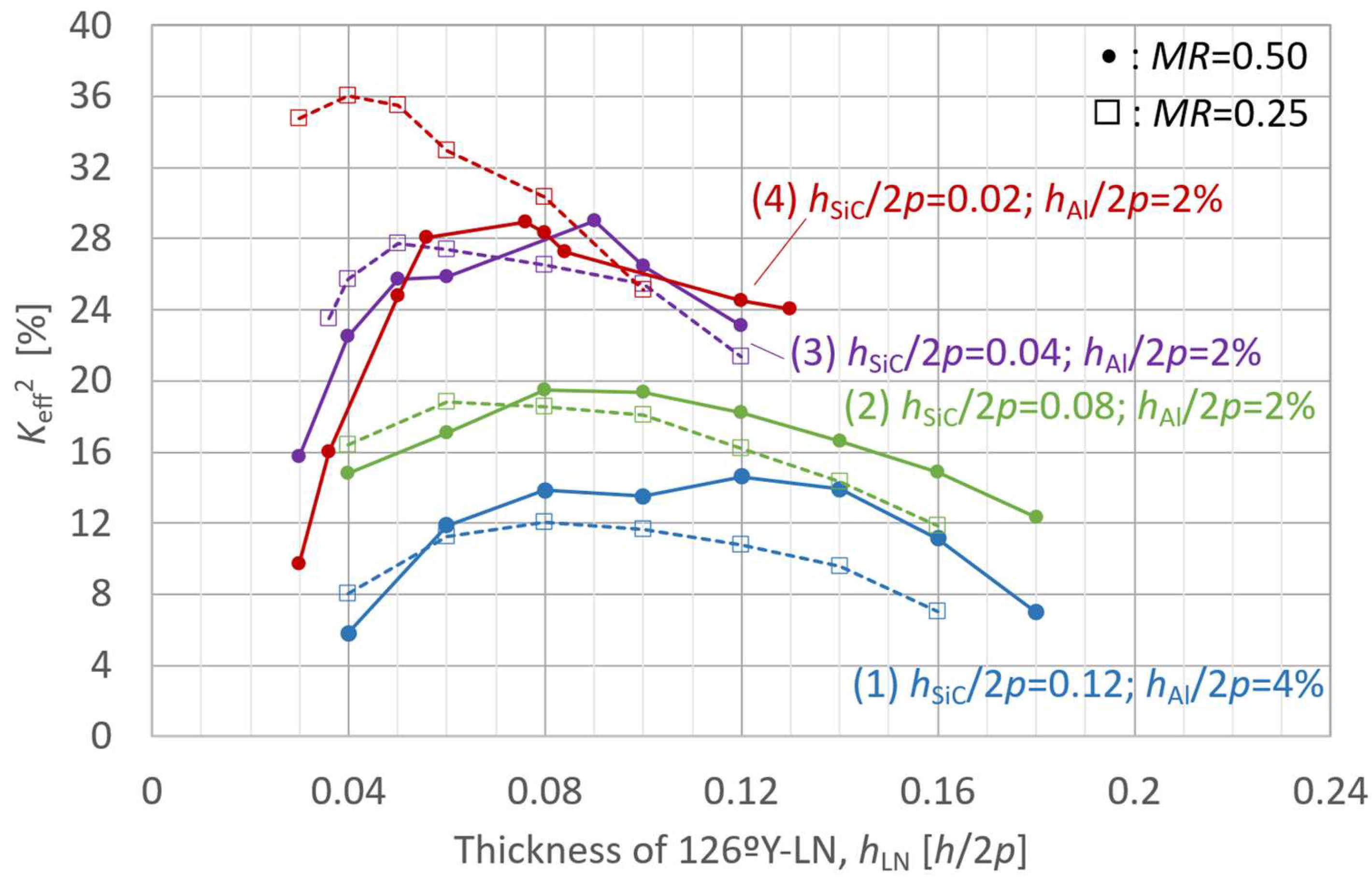 - 2—LN-single: hLN/2p = 0.10; hSiO2/2p = 0.10; hAl/2p = 4%; MR = 0.25