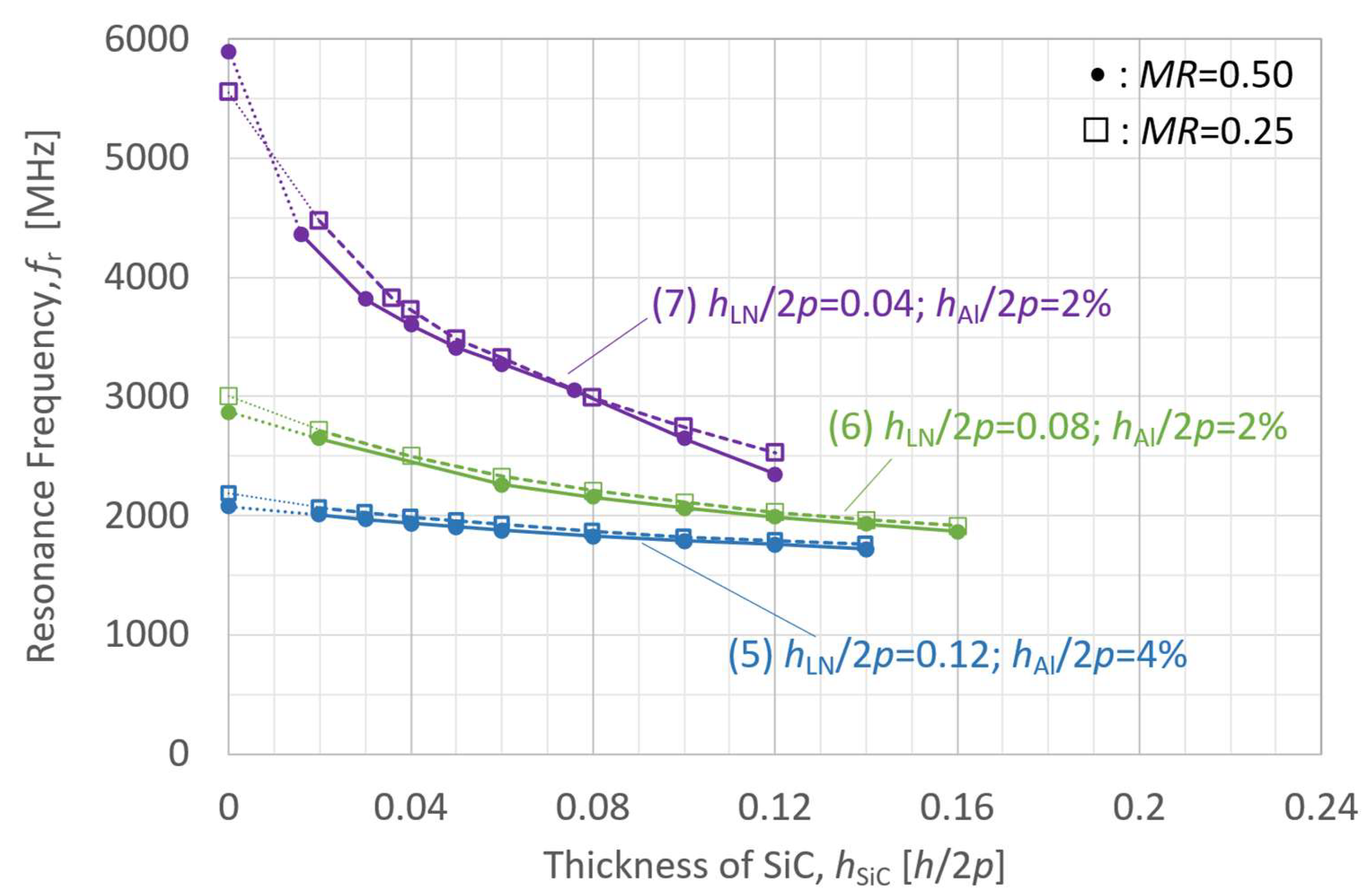 - 5—LN/SiC: hLN/2p = 0.10; hSiC/2p = 0.04; hAl/2p = 4%; MR = 0.25