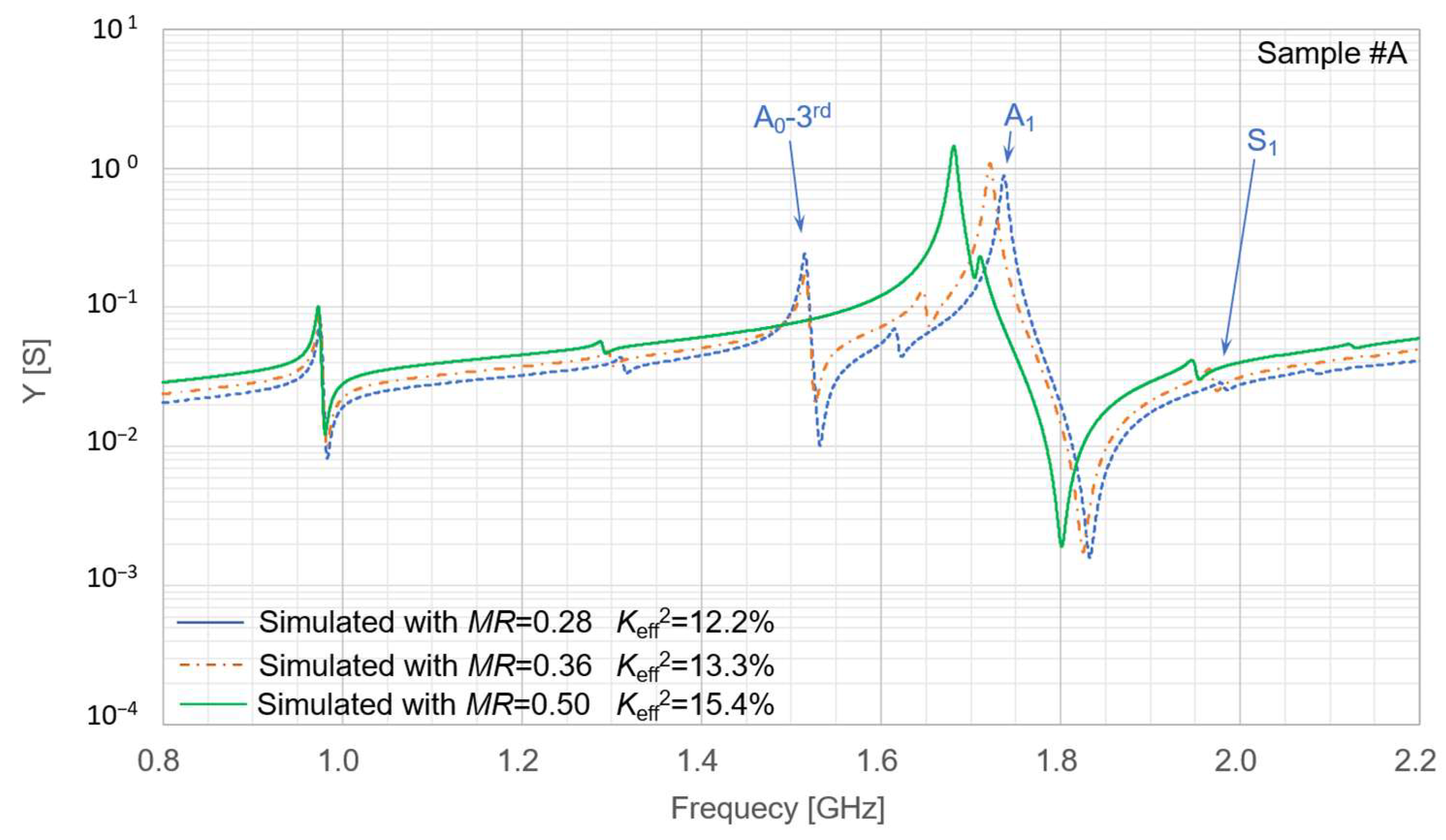 - Kobayashi, S.; Suzuki, M.; Kakio, S. Analysis of A0- and A1-mode Lamb waves and SH1-mode plate wave resonance properties on piezoelectric substrate with periodic voids. Jpn. J. Appl. Phys. 2025, 64, 05SP18. [Google Scholar] [CrossRef]