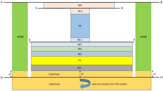 | Layer Material | Outer Radius (nm) | Height (nm) | Young’s Modulus (GPa) | Poisson’s Ratio |