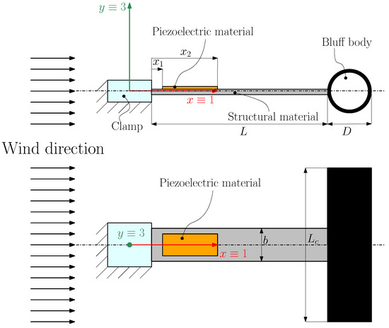 - Dai, H.; Abdelkefi, A.; Wang, L. Theoretical modeling and nonlinear analysis of piezoelectric energy harvesting from vortex-induced vibrations. J. Intell. Mater. Syst. Struct. 2014, 25, 1861–1874. [Google Scholar] [CrossRef]