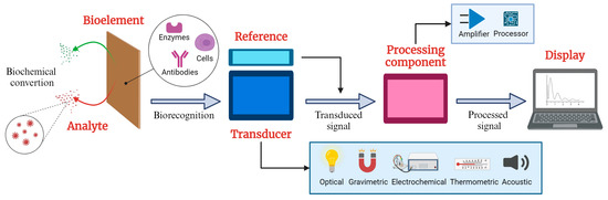 Figure 1. Schematic diagram of a typical biosensor (created with BioRender® 2024).
