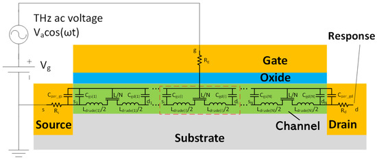 - Ibrahim, N.Y.; Rafat, N.H.; Elnahwy, S.E. Modeling of field effect transistor channel as a nonlinear transmission line for terahertz detection. J. Infrared Millim. Terahertz Waves 2013, 34, 606–616. [Google Scholar] [CrossRef]