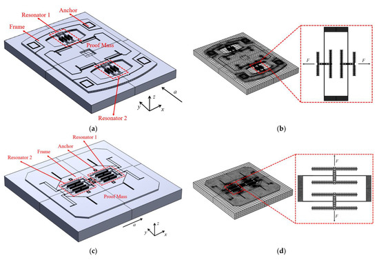 - Yin, Y.G.; Fang, Z.X.; Liu, Y.F.; Han, F.T. Temperature-insensitive Structure Design of Micromachined Resonant Accelerometers. Sensors 2019, 19, 1544. [Google Scholar] [CrossRef] [PubMed]