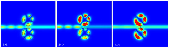 (a-a) Magnetic field distribution of the structure at nm; (a-b) magnetic field distribution of the structure at nm; (a-c) magnetic field distribution of the structure at nm.
