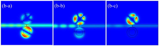 (b-a) Magnetic field distribution of the structure at nm; (b-b) magnetic field distribution of the structure at nm; (b-c) magnetic field distribution of the structure at nm.