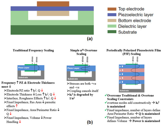 - Kochhar, A.; Vetury, R.; Leathersich, J.; Schaffer, Z.; Moe, C.; Kim, D.; Cheema, K.; Winters, M.; Shealy, J.B. X-band Bulk Acoustic Wave Resonator (XBAW) using Periodically Polarized Piezoelectric Films (P3F). In Proceedings of the 2023 IEEE International Ultrasonics Symposium (IUS), Montreal, QC, Canada, 3–8 September 2023; pp. 1–4. [Google Scholar]