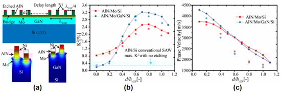 - Qamar, A.; Rais-Zadeh, M. Coupled BAW/SAW Resonators Using AlN/Mo/Si and AlN/Mo/GaN Layered Structures. IEEE Electron Device Lett. 2019, 40, 321–324. [Google Scholar] [CrossRef]