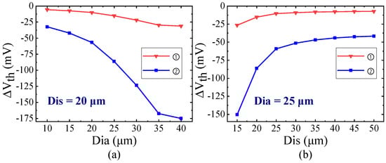 Impact of (a) Dia and (b) Dis on threshold voltage drift.