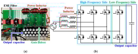 - Gong, X.; Wang, G.; Bhardwaj, M. 6.6 kW Three-phase interleaved totem pole PFC design with 98.9% peak efficiency for HEV/EV onboard charger. In Proceedings of the IEEE Applied Power Electronics Conference and Exposition, Anaheim, CA, USA, 17–21 March 2019. [Google Scholar]