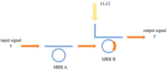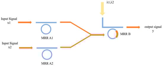 The basic on-chip device of the proposed optical computing systems is a nonlinear MRR. The working principle of the proposed nonlinear MRR can be summarized as follows: The nonlinear waveguide is embedded into the MRR; if the nonlinear MRR is pumped by strong light, the refractive index of the nonlinear waveguide will change, the MRRs’ resonance state will be switched, and the resonance peak will shift to another wavelength.
