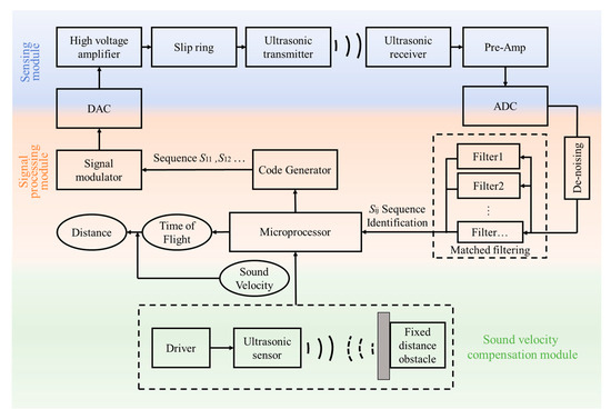 - Shin, S.; Kim, M.; Choi, S. Improving efficiency of ultrasonic distance sensors using interval modulation. In Proceedings of the 15th IEEE Sensors Conference, Orlando, FL, USA, 5–7 December 2016. [Google Scholar]