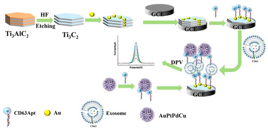 54. Zhang, H.; Wang, Z.; Wang, F.; Zhang, Y.; Wang, H.; Liu, Y. In Situ Formation of Gold Nanoparticles Decorated Ti3C2 MXenes Nanoprobe for Highly Sensitive Electrogenerated Chemiluminescence Detection of Exosomes and Their Surface Proteins. Anal. Chem. 2020, 92, 5546–5553. [Google Scholar] [CrossRef] [PubMed]