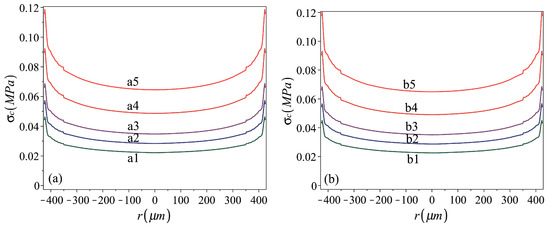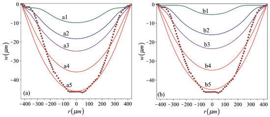 The curves presented in Figure 5a show that smaller stamping pressures yield shells of a residual bell shape, with negative curvature in a region near the perimeter and positive curvature within the central region (i.e., a3). Under larger stamping stresses, shells of a residual cap shape (i.e., a5) are obtained.