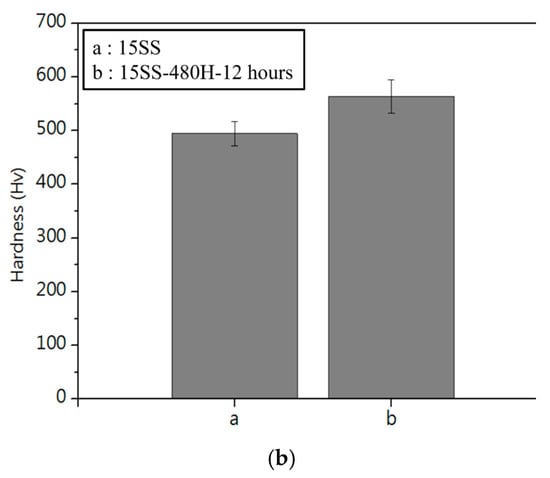 15SS-480H-12 h (a) microstructure; (b) micro-hardness.